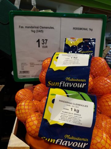 Minėtoje parduotuvėje iš 12 pasvertų apelsinų pakuočių po kilogramą 4 pakuočių svoris neatitiko nurodytojo. Neatitikimai buvo įvairūs – ir 53 gramai, ir 23, ir 30, ir 21. Iš 7 pasvertų greipfrutų sultims pakuočių po 1,5 kg neatitiko 5 pakuočių svoris. Čia skirtumai gerokai didesni: vienoje pakuotėje – net 248,5 gramo, rastas ir kone 180 gramų neatitikimas. Iš 13 pasvertų kilograminių mandarinų pakuočių net 11 svoris neatitiko. Vienoje jų trūko net 171 gramo, kitose – po mažiau.