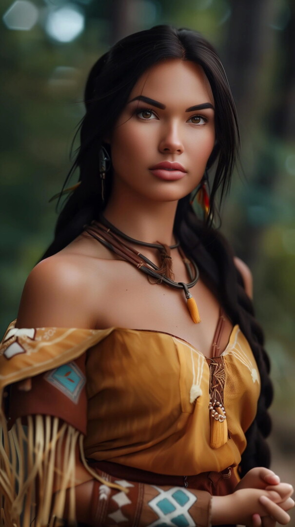 Firminis jos triukas – šuolis nuo uolos, po kurio Pokahonta žemyn krenta net 9 sekundes. Atsižvelgę į šuolio trukmę ir numatomą animacinės merginos ūgį, mokslininkai suskaičiavo, kad uolos aukštis turėtų būti ne mažesnis kaip 250 m. Tai beveik penkiskart daugiau nei dabar galiojantis šuolio nuo uolos rekordas.