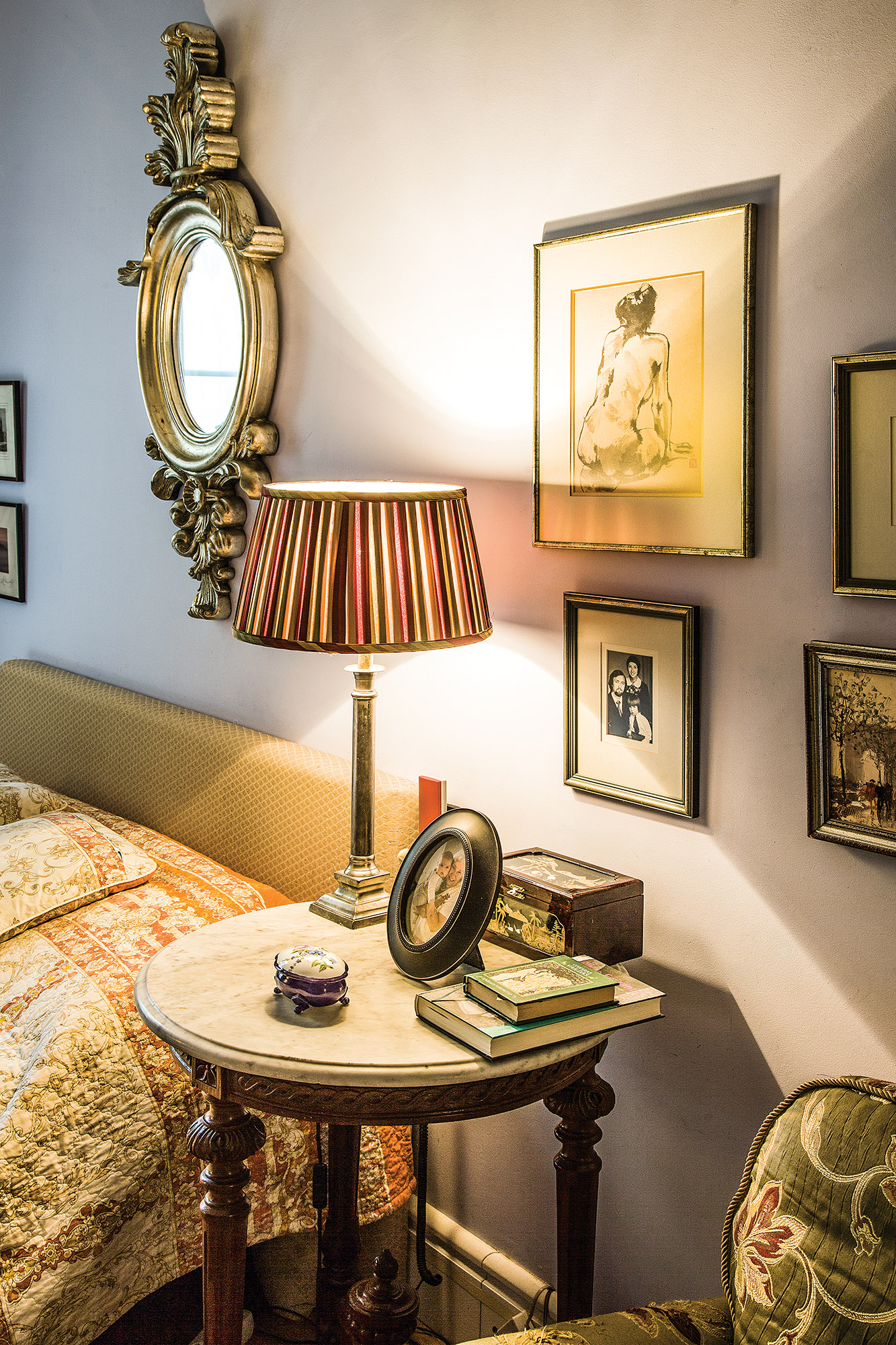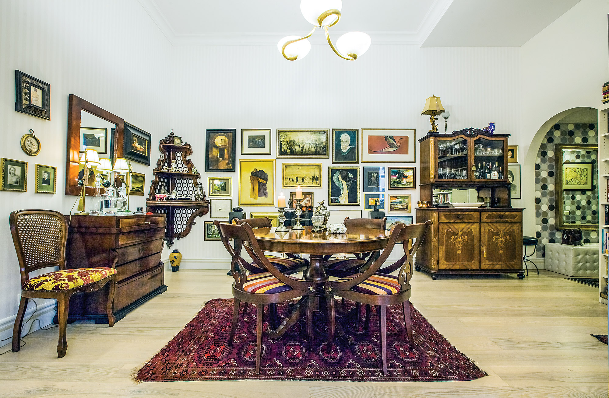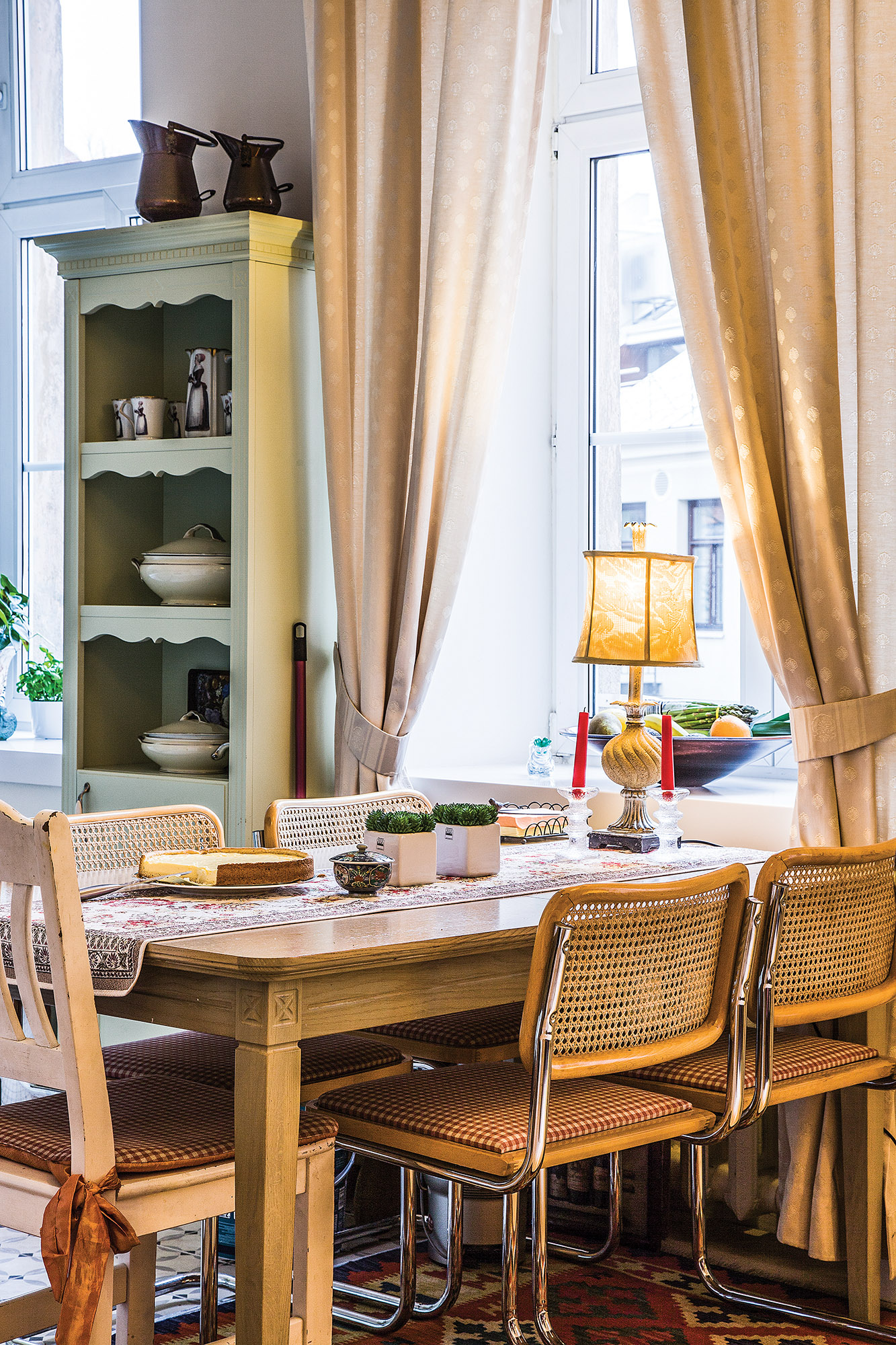 Šiuos du baldus, kaip ir miegamajame esantį krėslą, taip pat stalą N. Galinienė paveldėjo iš tėvų. Vaikystės namuose vyravo panaši, pagarbą antikvarui, paveldui ir istorijai puoselėjanti stilistika. „Gal jaunimui kitaip, bet man tie seni baldai nenusibosta. Visai nesvarbu, kokios interjero mados ateina, kokie baldai ar spalvos madingos – šių tiesiog nesinori keisti“, – pabrėžia būsto šeimininkė.