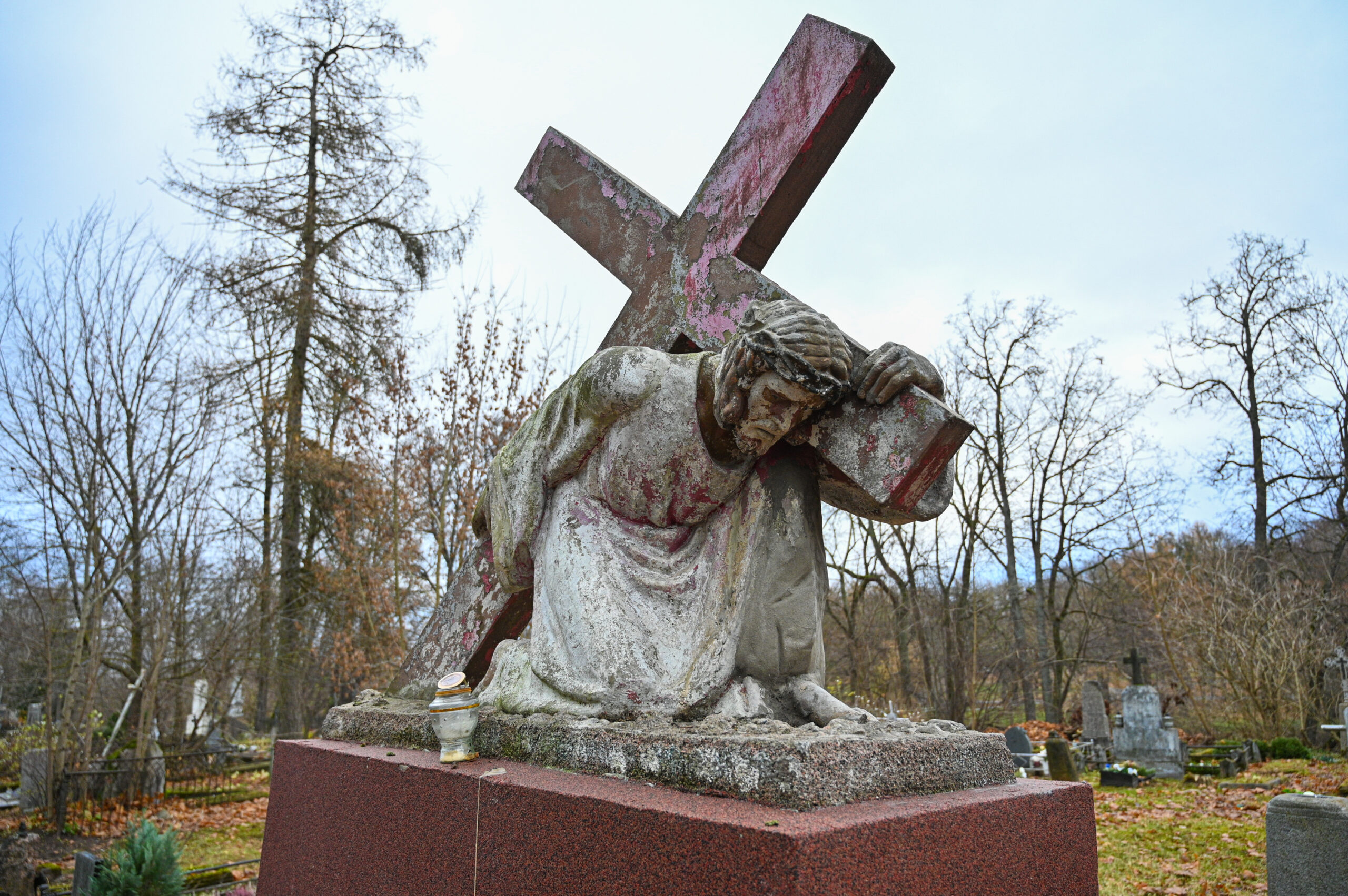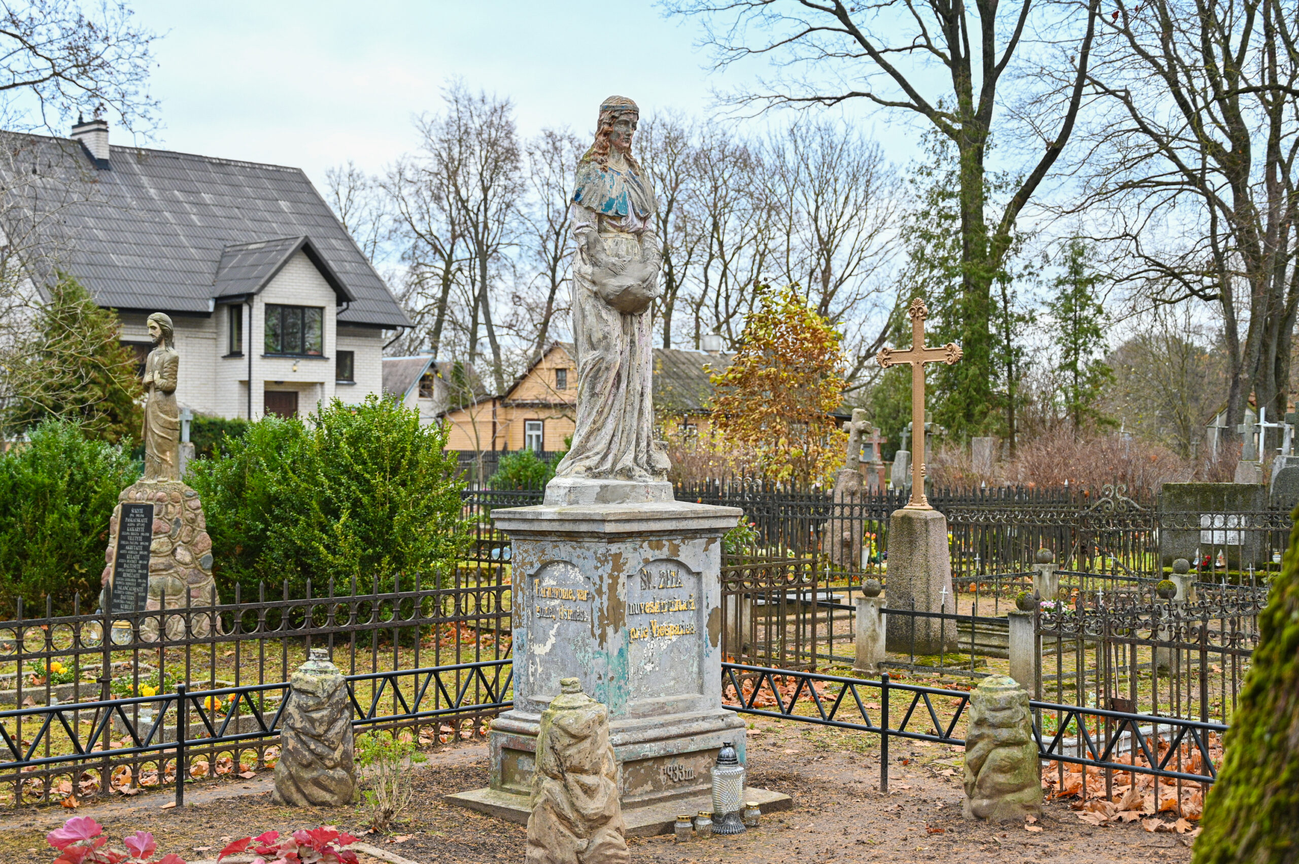 Šių menininkų sukurtas ir įspūdingas įėjimas į senąsias kapines iš Apvaizdos tako pusės.