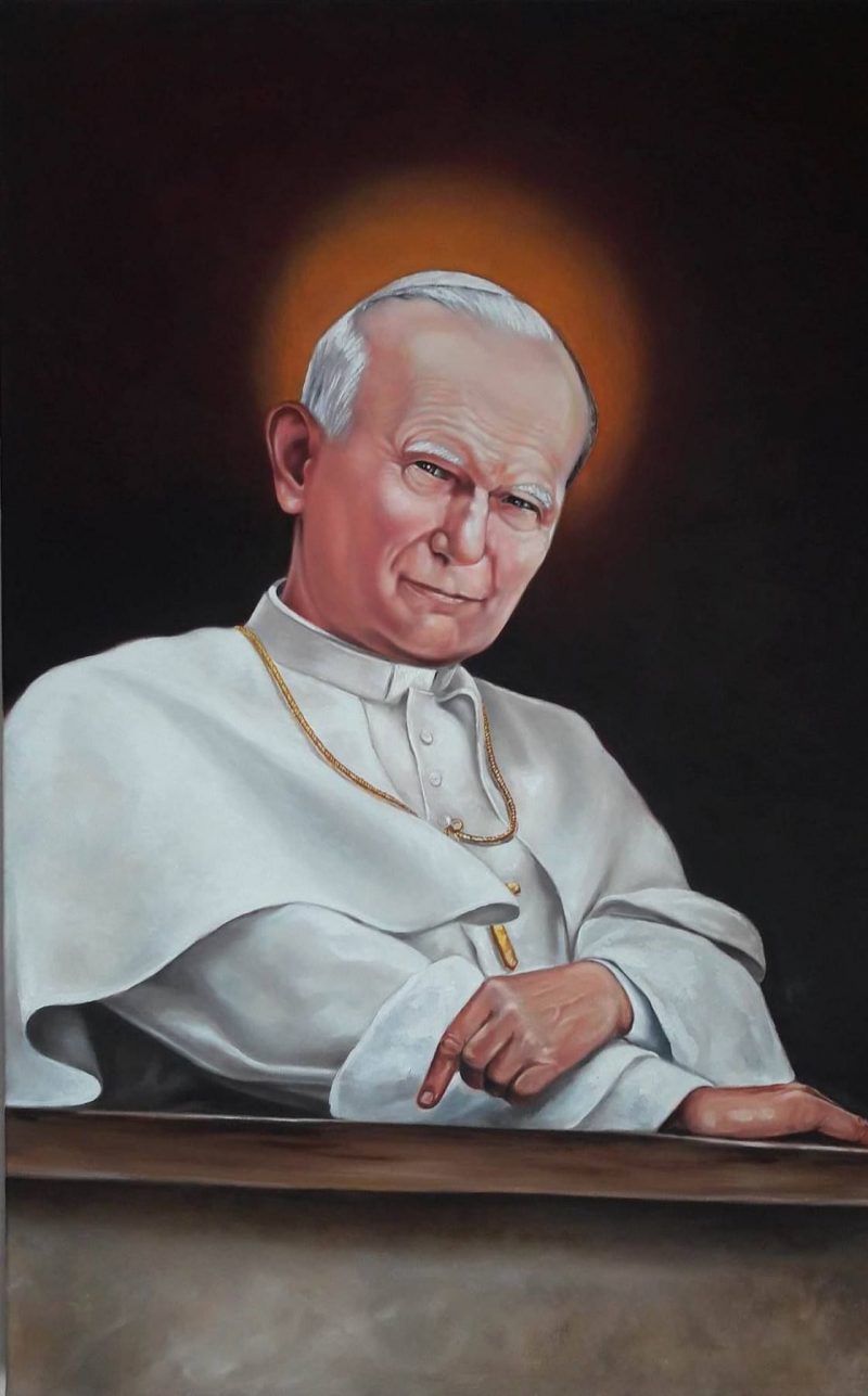 Religijos tema Ryčiui niekada nebuvo svetima. Prieš keletą metų Tytuvėnų bažnyčiai jis nutapė unikalų popiežiaus Jono Pauliaus II portretą. Asmeninio archyvo nuotr.