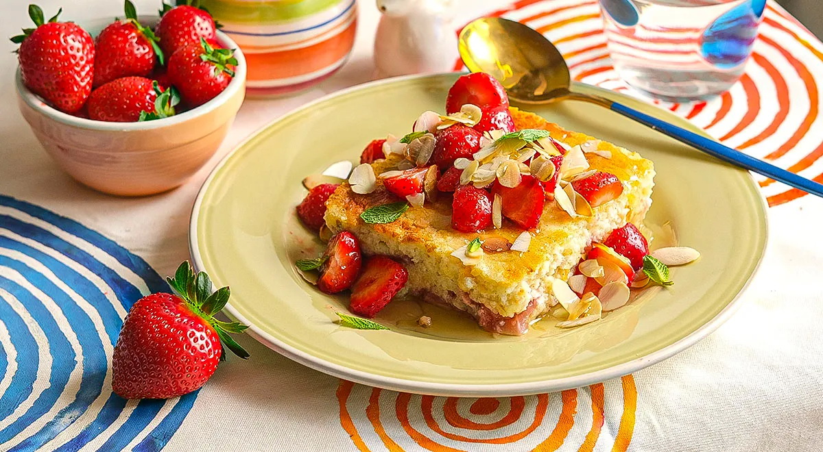 Braškėmis įdaryta kepta manų košė