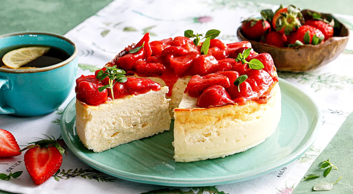 Varškės tortas su braškėmis