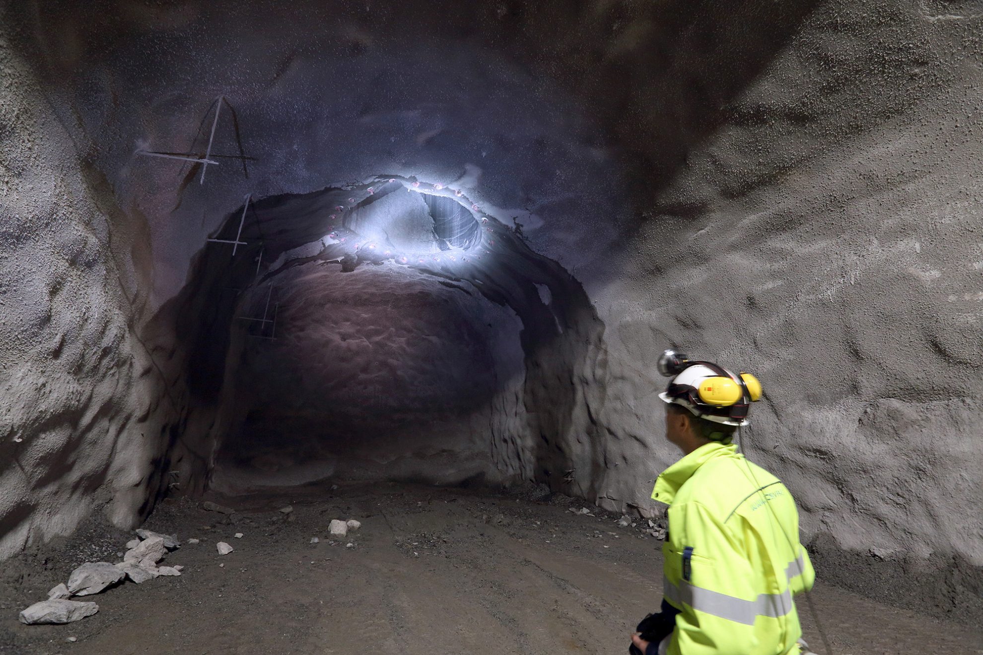 Stati spiralinė penkių kilometrų ilgio rampa jungia tunelio angą (nuotr.) su Žemės gelmėmis. Ten, giliai, geltonas gręžimo bokštas uoloje daro skyles, nes ji ruošiama sprogdinti. Justi žvarba, bet po keleto metų čia gali būti labiau panašu į suomišką pirtį. Duobėse bus palaidoti variniai 5,2 metro ilgio konteineriai su bene radioaktyviausių pasaulyje branduolinių atliekų likučiais. Kai bus baigta gręžti (maždaug po šimto metų), tuneliuose, kurių bendras ilgis sieks iki 70 kilometrų, tokių konteinerių bus 3250, o kiekviename – po pusę tonos panaudoto kuro. Tada visa teritorija bus izoliuota, kad nekeltų pavojaus ateities kartoms.