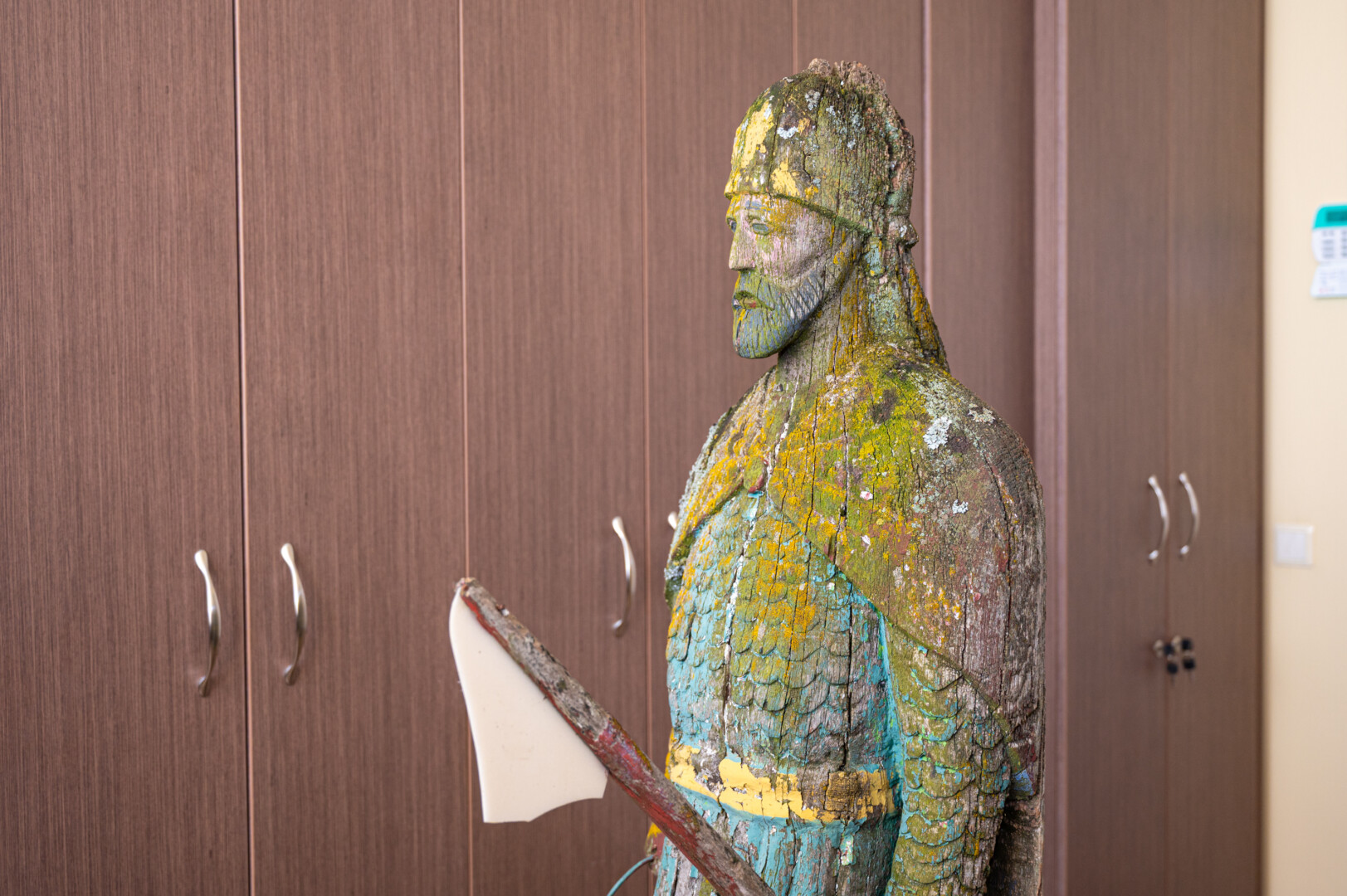 Nuo gaisrų miestelį saugojusią ąžuolinę šio šventojo skulptūrą nuo sunykimo imasi gelbėti restauratoriai profesionalai.