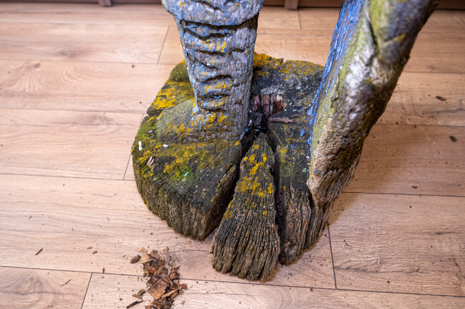 Anot restauratoriaus, medinę skulptūrą iš lauko perkėlus į muziejų, prireikė nemažai laiko jai išdžiūti. Šis džiūvimo procesas užtruko apie pusmetį.
