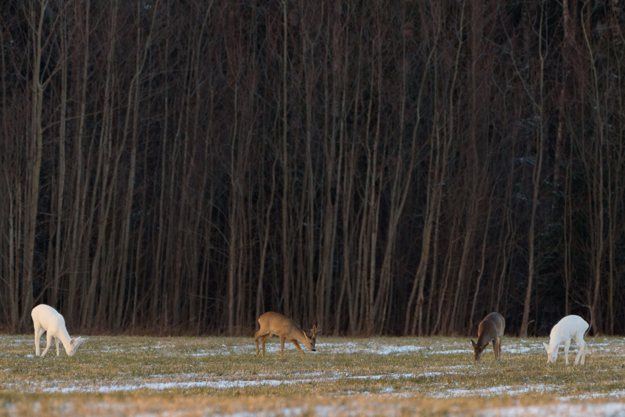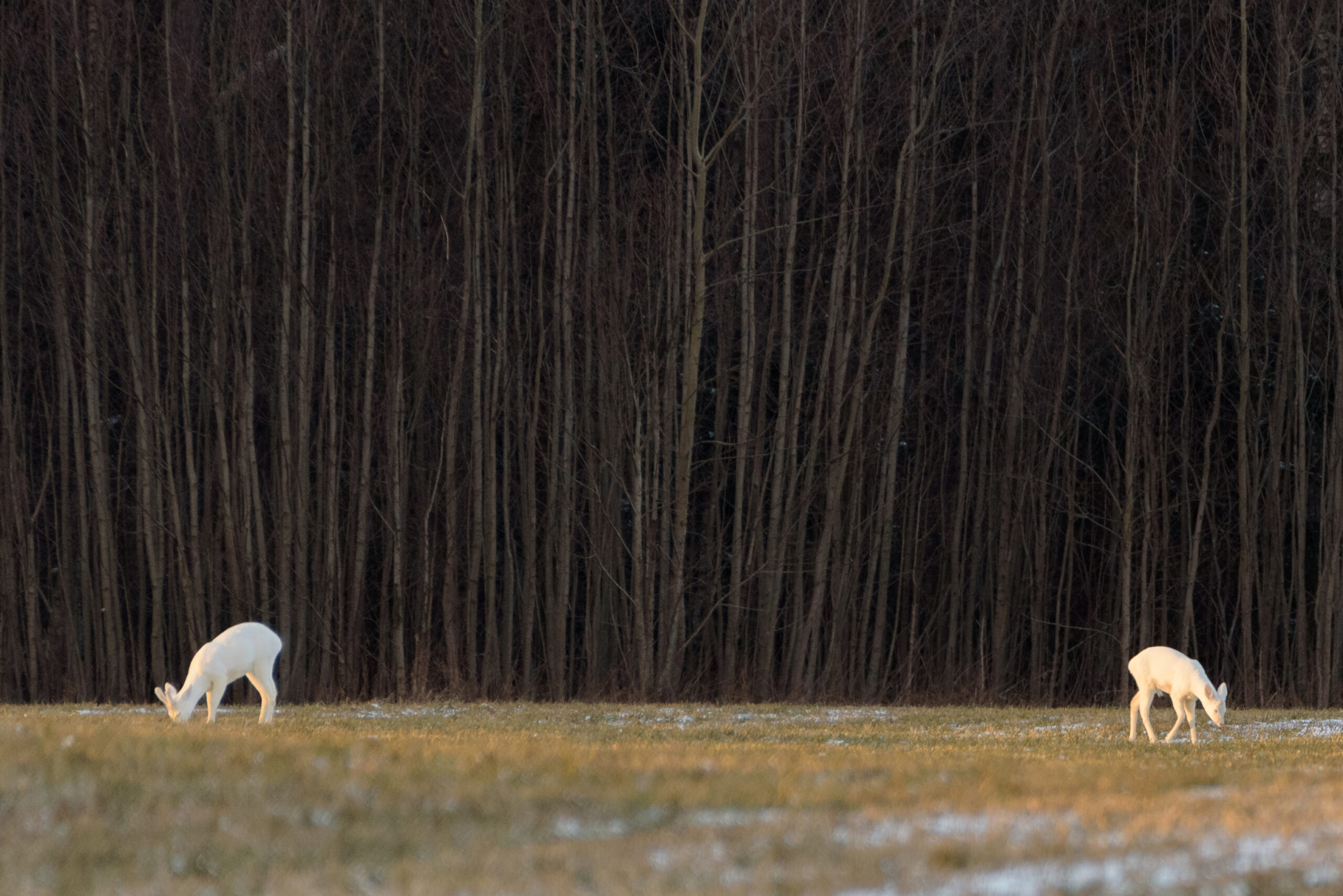 Panevėžietė fotografė Giedrė negalėjo savo akimis patikėti, kai pamiškėje pamatė dvi tokias gražuoles. Gamtininkų ir medžiotojų spalvų anomalijos per daug nebestebina.