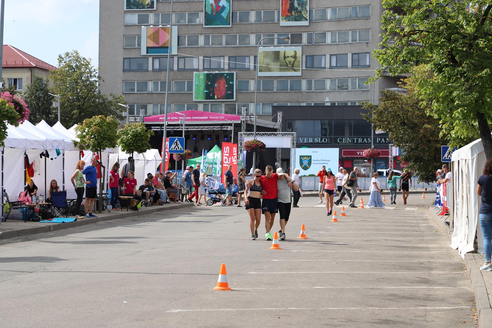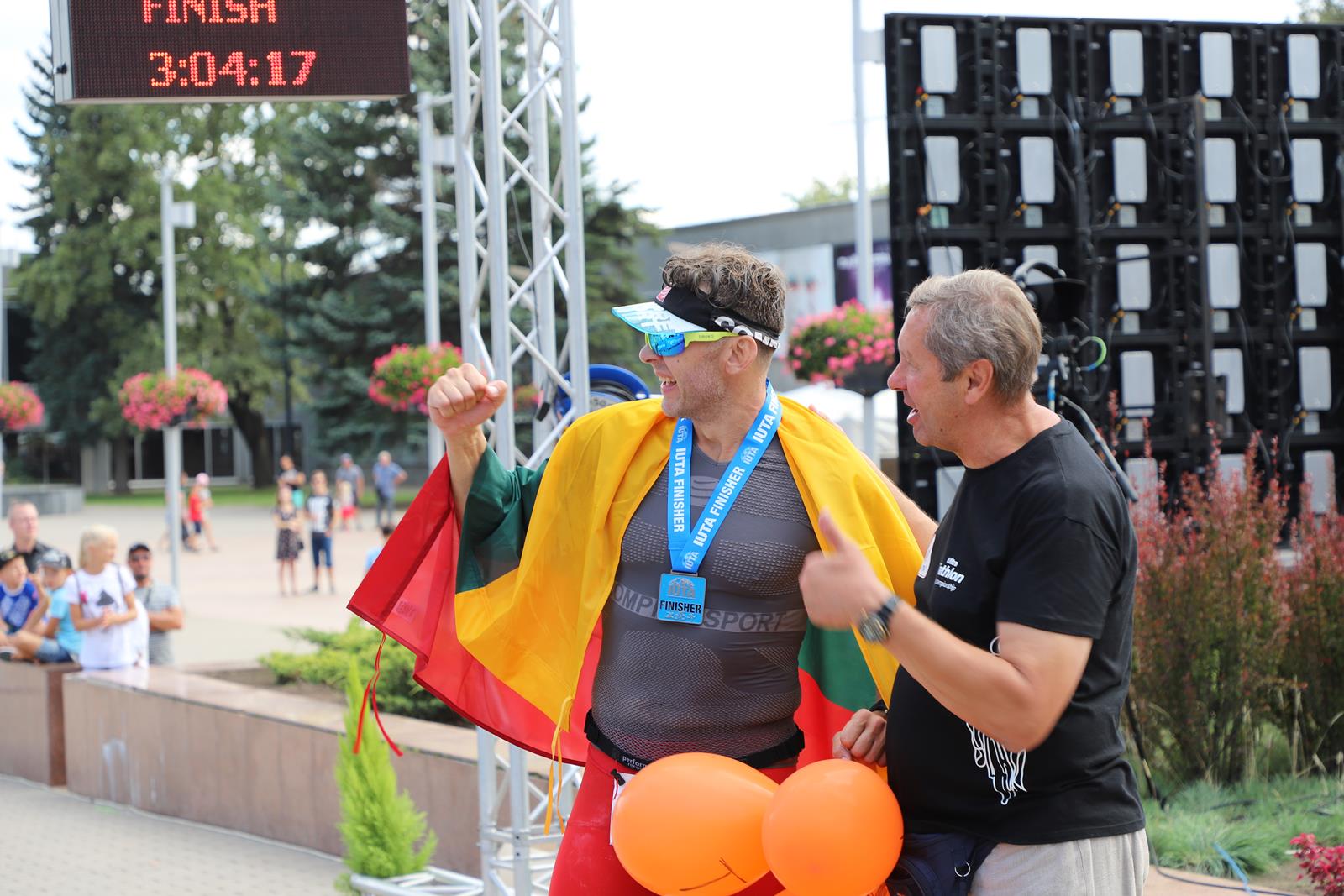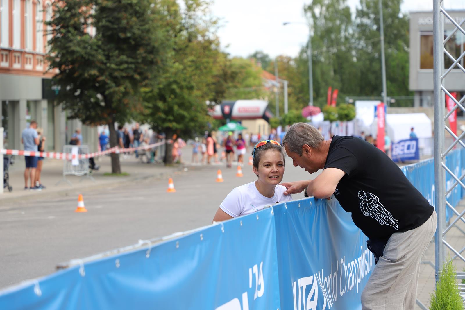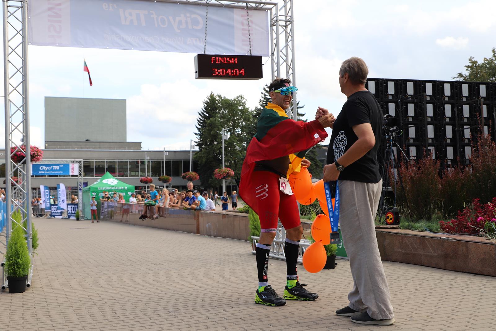 Vos tik kirtus finišo liniją, naująją pasaulio čempionę pasveikino pagrindinis šio renginio organizatorius panevėžietis Vidmantas Urbonas.