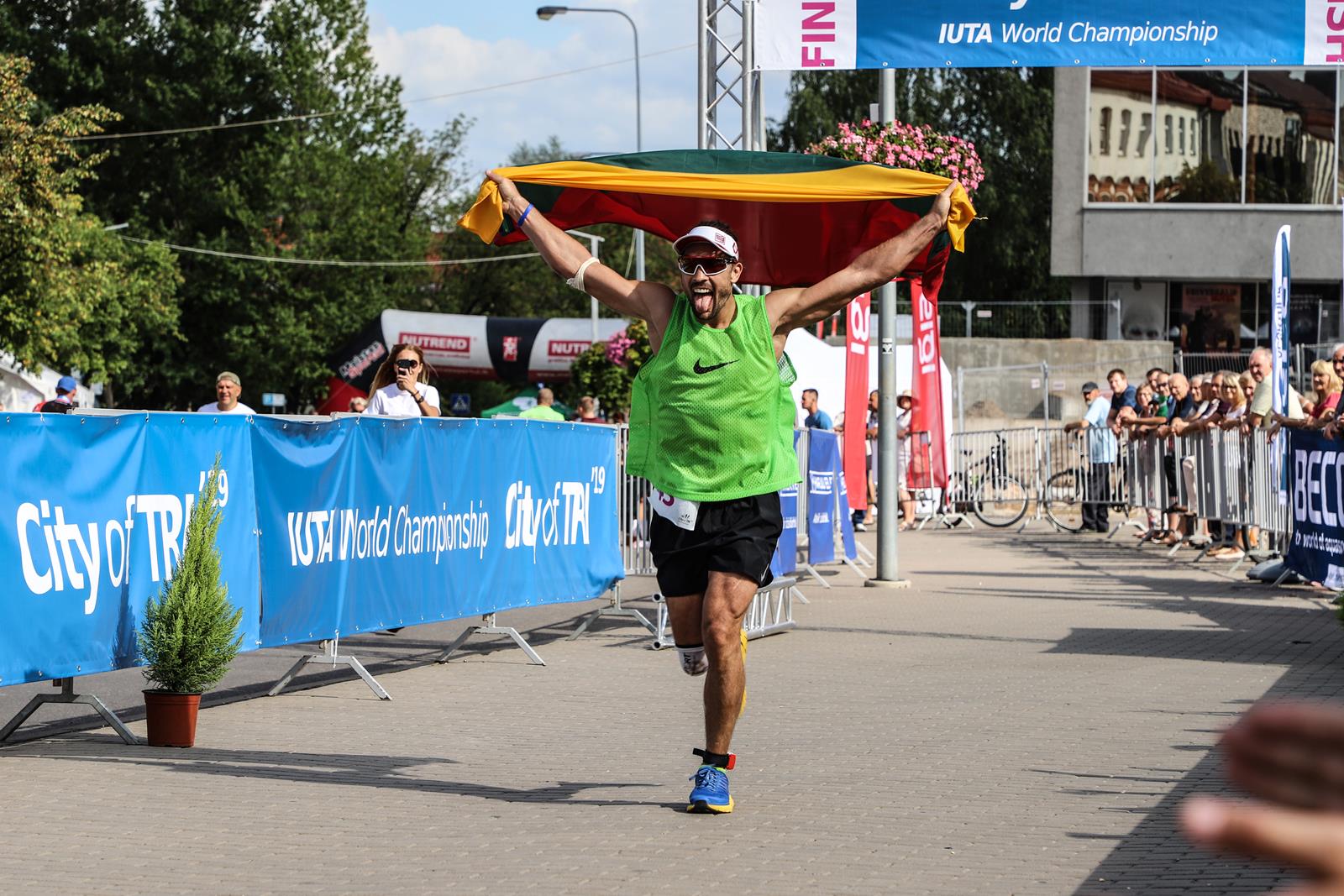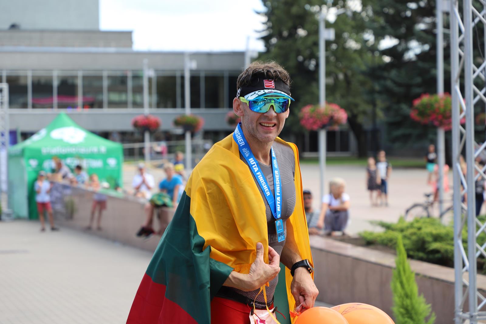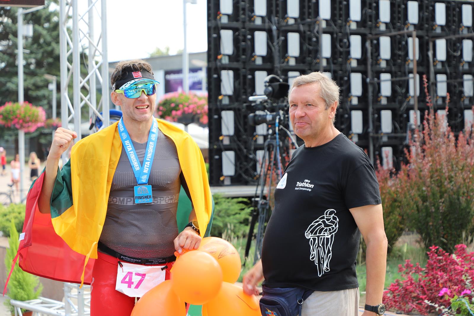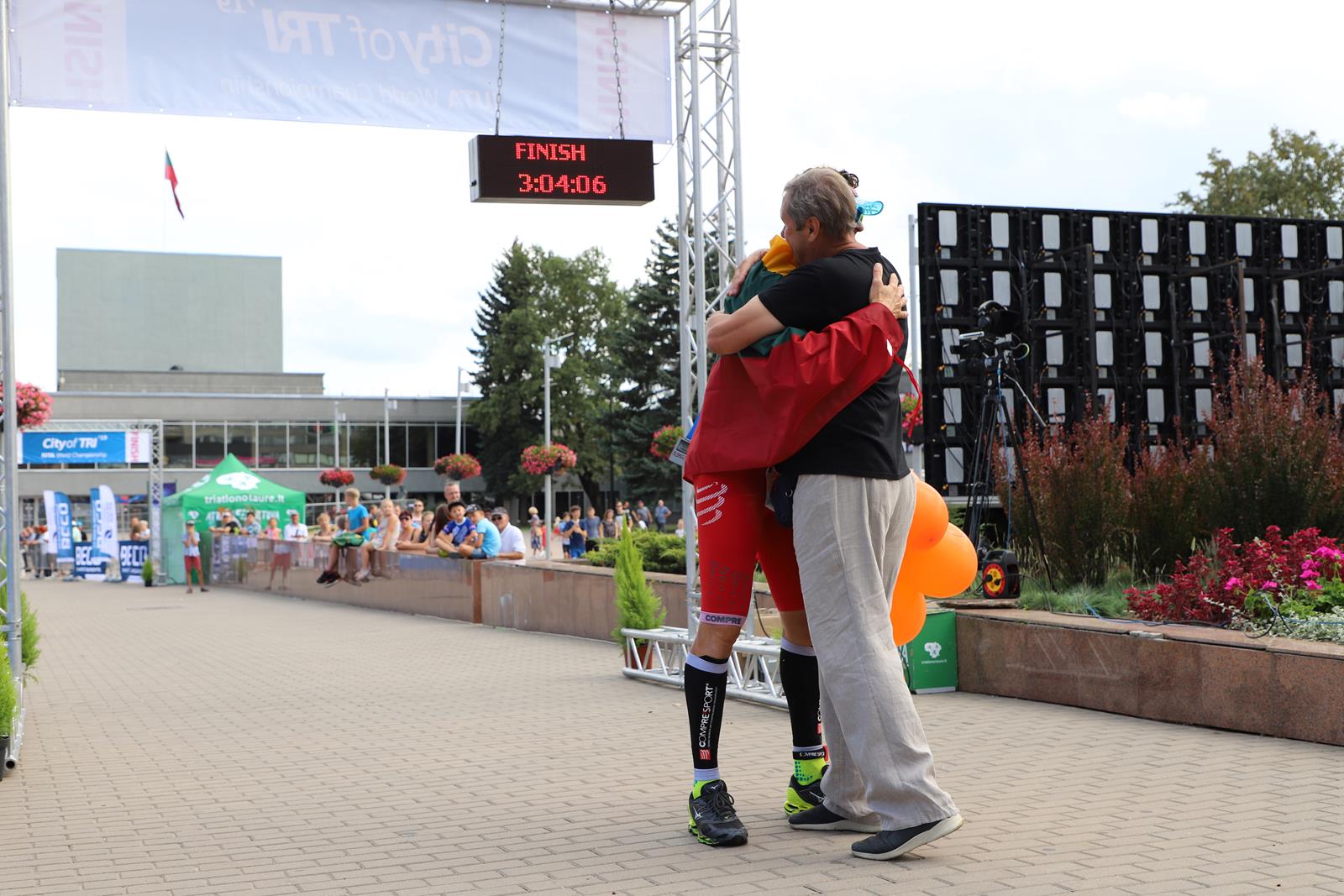 Vos tik kirtus finišo liniją, naująją pasaulio čempionę pasveikino pagrindinis šio renginio organizatorius panevėžietis Vidmantas Urbonas.