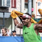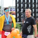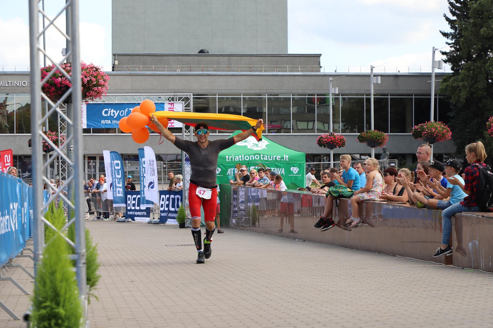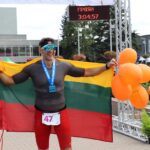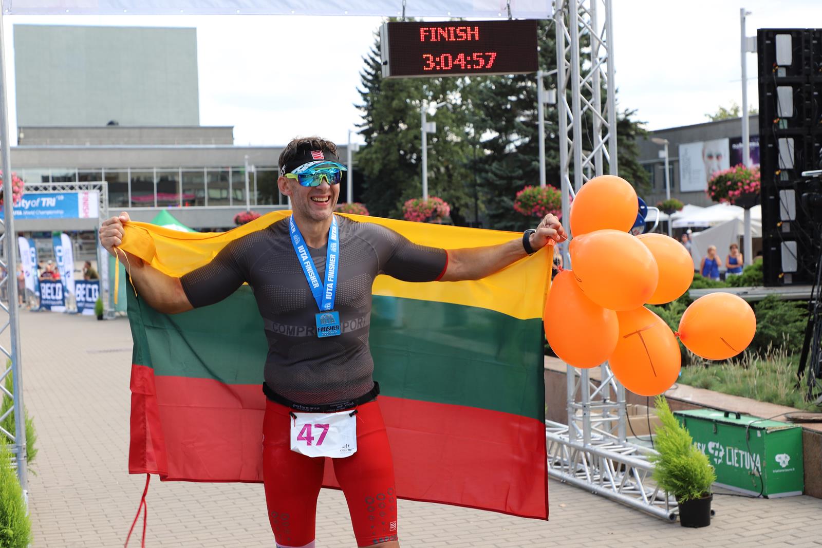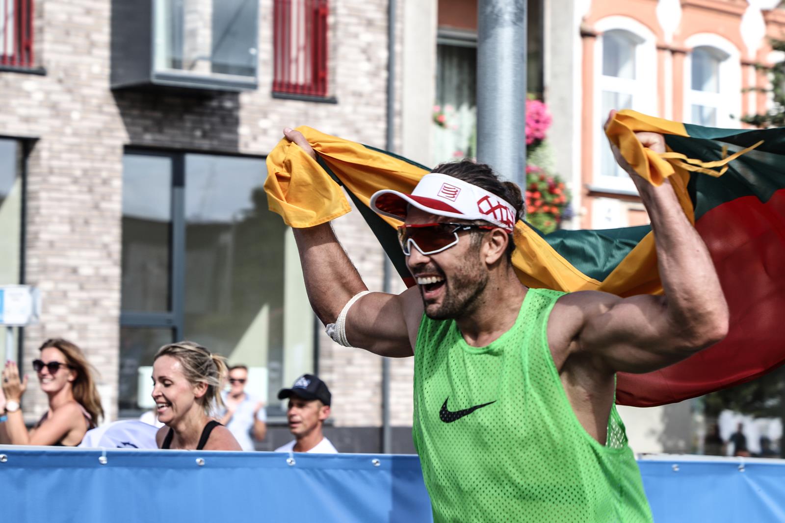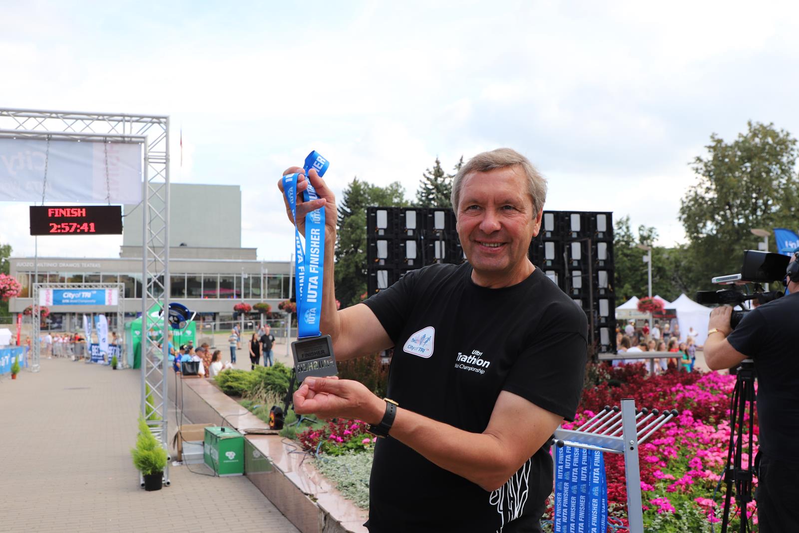 Vos tik kirtus finišo liniją, naująją pasaulio čempionę pasveikino pagrindinis šio renginio organizatorius panevėžietis Vidmantas Urbonas.