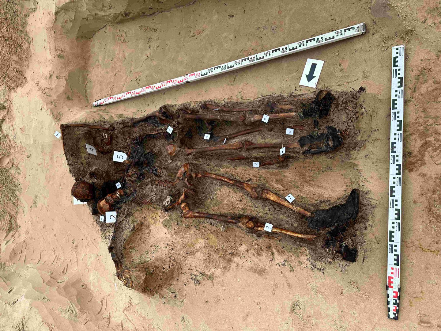 Vieni palaikai buvo rasti vienoje duobėje, ketveri palaikai – antroje duobėje, dar vieni palaikai – trečioje duobėje. Archeologinius tyrimus atliekantys Praeities tyrimų instituto archeologai trečioje duobėje tikisi rasti daugiau palaikų, nes tyrimai tęsis iki liepos 9 dienos (imtinai).