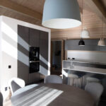 Atokiau nuo miesto triukšmo esantis rąstinis namas, jį supanti gamta ir miestietiškas šeimininkų gyvenimo būdas „ArchDesign“ architektei Daliai Jovaišienei padiktavo pagrindinę interjero kūrimo idėją – natūralų konstrukcijų grožį supriešinti ir sykiu sujungti su modernia miestietiška estetika.