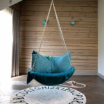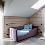 „Pradėjus kurti interjerą, šeimoje augo tik vienas vaikas. Jis dar miegojo su mama, todėl iš vieno miegamojo padarėme žaidimų kambarį. Pakabinome sūpuokles, pritvirtinome kablių laipioti, priderinome šviestuvus – kambarys vaikams augant galės keistis“, – kalba D. Jovaišienė.
