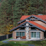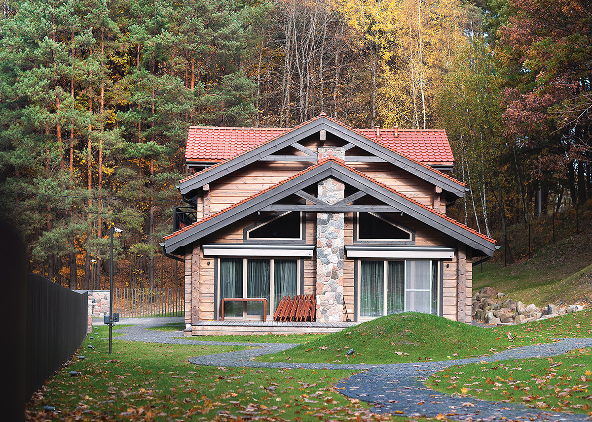 Projektuodama statinį miško apsuptyje J. Pauplienė sako galvojusi ir apie visai šalia esantį miesto centrą – būtent ši mintis neleido pasiduoti kaimiškai architektūrai. Tiesa, dalis akcentų (medinės stogo ar balkono detalės) atrodo tradiciškai, tačiau bendras įspūdis yra šiuolaikiškas. Jį sustiprina ir subtili rąstų spalva.