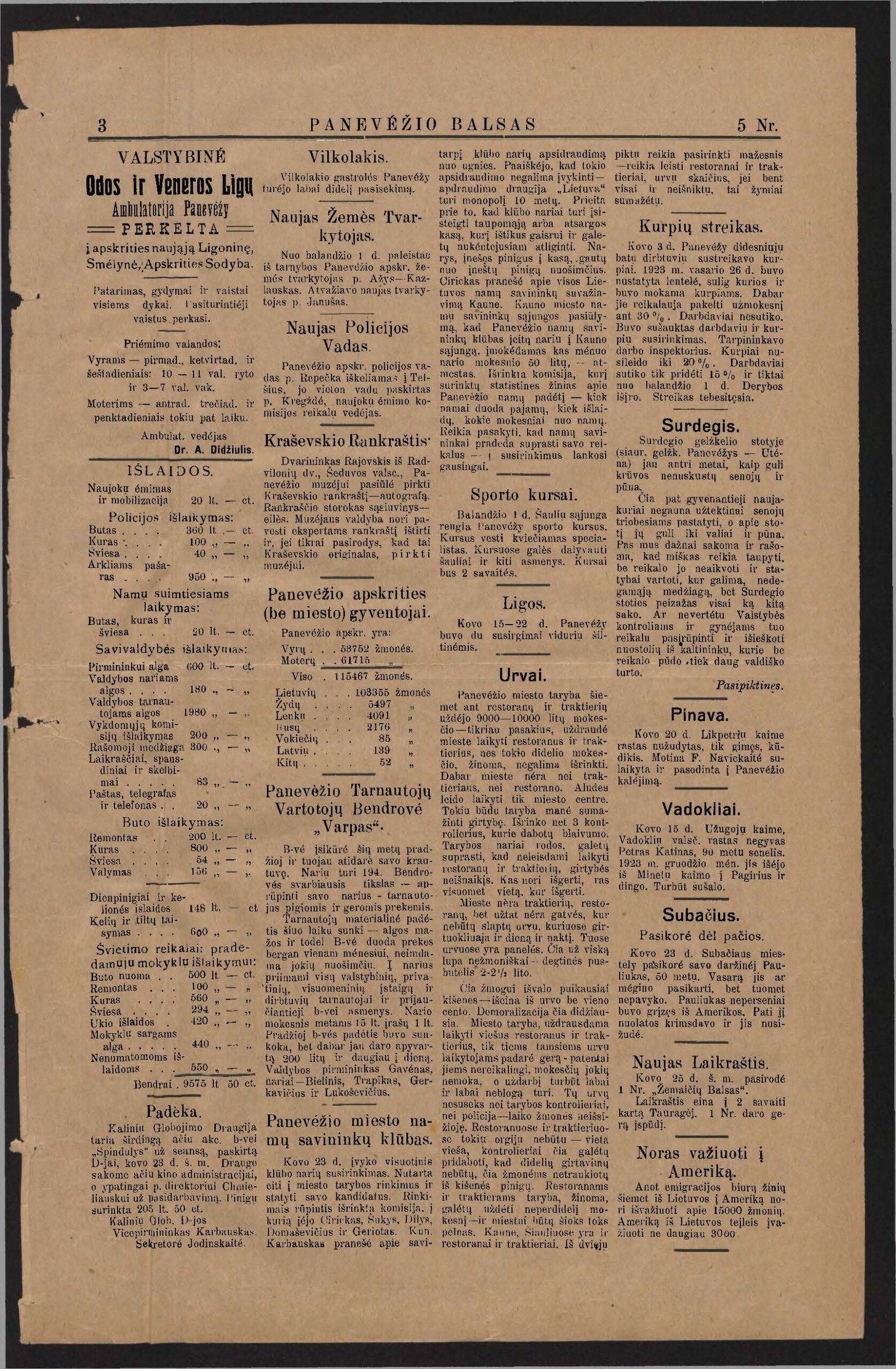 „Panevėžio miesto taryba šiemet ant restoranų ir traktierių uždėjo 9000–10000 litų mokesčio –tikriau pasakius, uždraudė mieste laikyti restoranus ir traktierius, nes tokio didelio mokesčio, žinoma, negalima išrinkti. Dabar mieste nėra nei traktieriaus, nei restorano. Aludes leido laikyti tik miesto centre. Tokiu būdu taryba manė sumažinti girtybę. Išrinko net 3 kontrolierius, kurie dabotų blaivumo. Tarybos nariai galėtų suprasti, kad neleisdami laikyti restoranų ir traktierių, girtybės