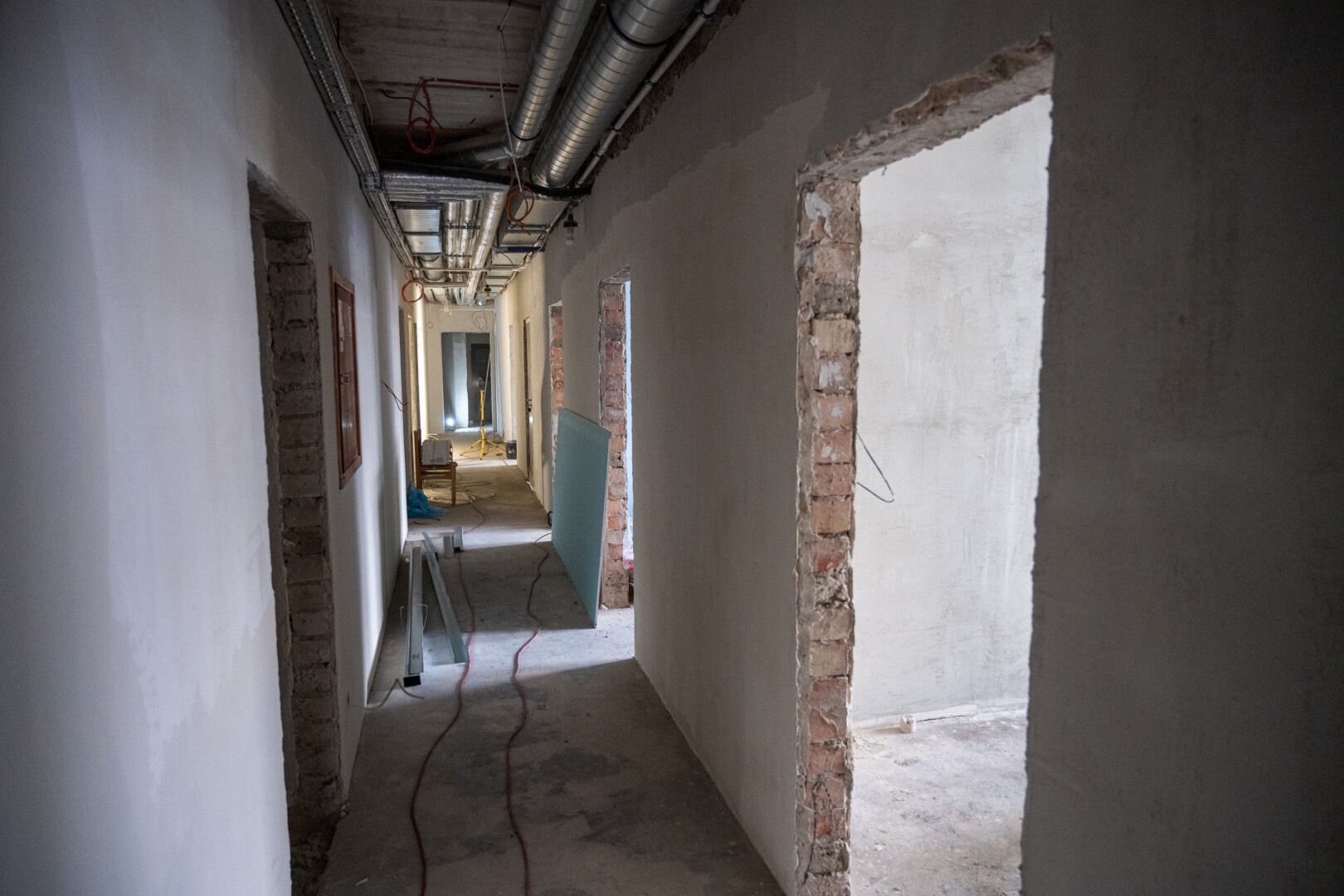 Kaip ir būdinga pastatų vidaus atnaujinimui, rekonstrukcija pradėta nuo griovimo darbų.