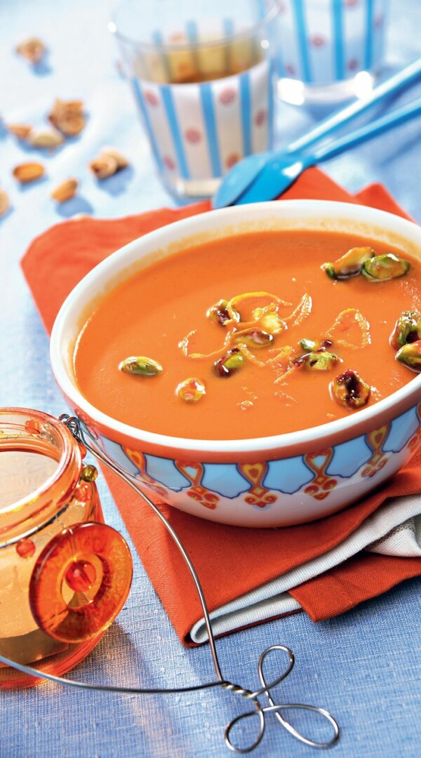 Trinta moliūgų sriuba su karamelizuotomis pistacijomis