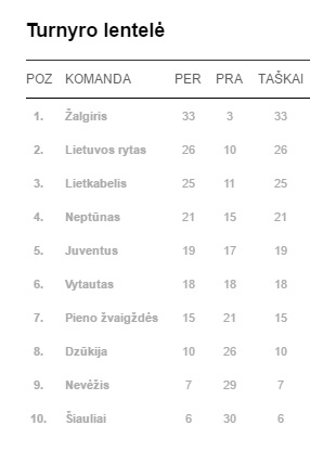 „Lietkabelis“ reguliarujį sezoną baigė trečiojoje vietoje, o „Nevėžis“ su vos septyniomis pergalėmis į atkrintamąsias nepateko.
