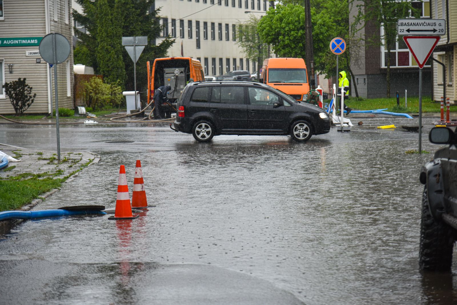 Visgi netrukus paaiškėjo, kad gatvė apsemta ir dėl pačių darbininkų kaltės.