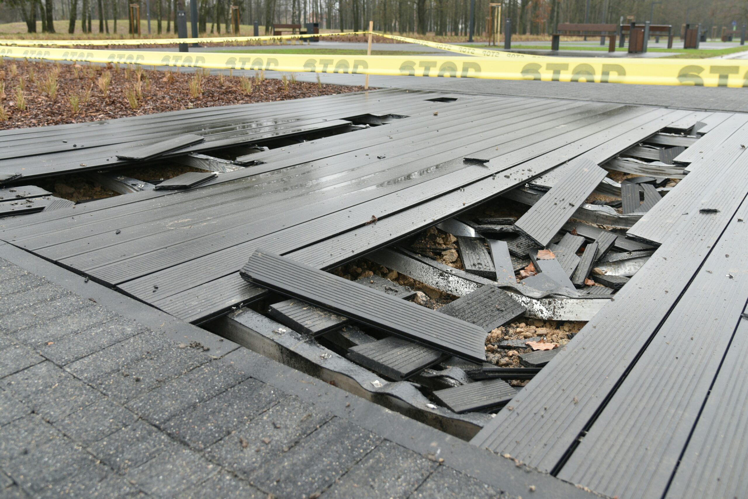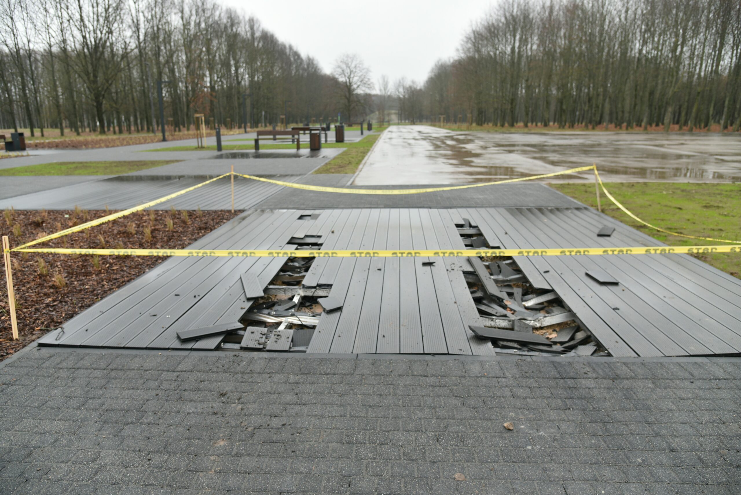 Savivaldybė praneša, jog dangą vėl reikės siųstis iš užsienio, todėl jos sutvarkymas gali užtrukti keletą mėnesių.