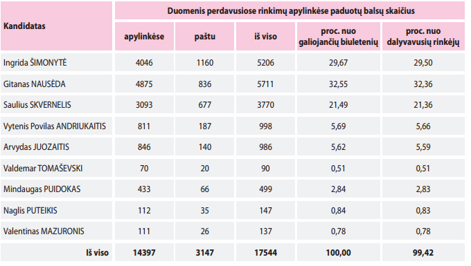 Prezidento rinkimų pirmasis turas didelių staigmenų nepažėrė – į antrąjį rinkimų turą pateko ekonomistas Gitanas Nausėda ir konservatorių (TS-LKD) kandidatė Ingrida Šimonytė. Panevėžio mieste ir rajone susiklostė kiek netikėta situacija. Savivaldos rinkimuose mieste konservatoriams panevėžiečiai atsuko nugarą, tačiau prezidento rinkimuose daugiausia palaikymo sulaukė TS-LKD kandidatė I. Šimonytė. Panevėžio rajone labai panaši situacija – čia jau ne pirmą dešimtį metų konkurencijos neturi valstiečiai, tačiau jų pasiūlyto kandidato Sauliaus Skvernelio žmonės nepalaikė – daugiausia balsų atidavė G. Nausėdai. Pirmos ir antros vietos laimėtojus skiria vos keli procentiniai punktai, tad antrasis rinkimų turas žada būti įtemptas. Anot sociologų ir politologų, šie rinkimai parodė, kad žmonėms svarbu ne deklaruojamos politinės pažiūros, kurios iš esmės visų kandidatų yra panašios, o asmenybės žavesys.