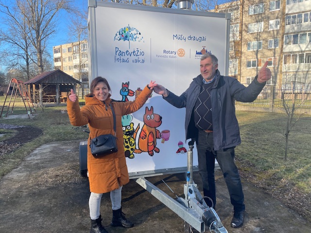 Įsigyti tokią priekabą Panevėžio rotariečiams padėjo Čikagos lietuvių rotariečių klubas, o tuo rūpinosi Panevėžio Rotary klubo nariai Lauras Jagminas bei Gediminas Daškevičius.
