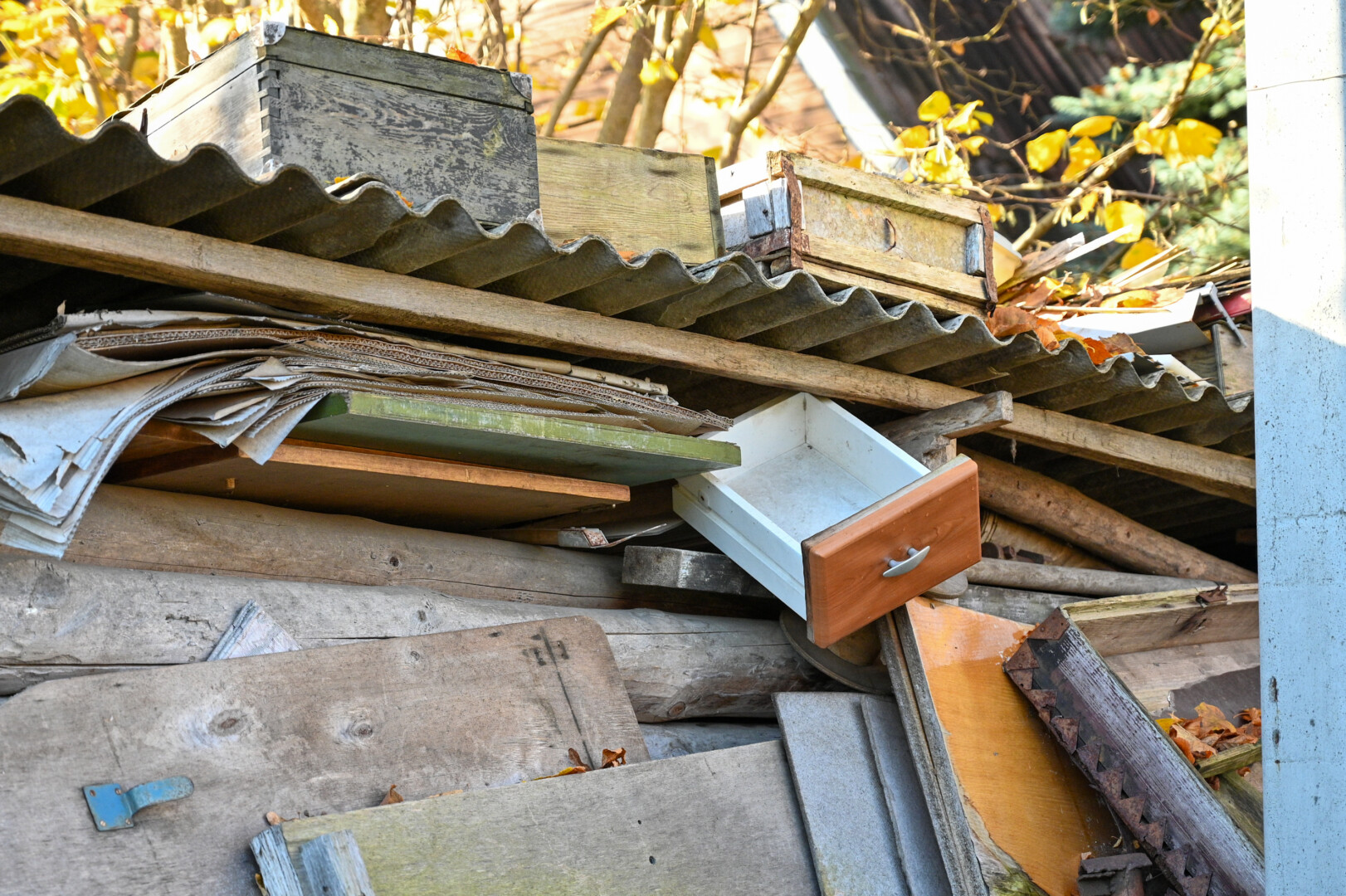 Priešais jo namo dalį – krūva įvairiausių daiktų: kaži kokios rūdijančios spintos, skardos, metaliniai, plastikiniai daiktai, rąstai, lentos, plytgaliai.