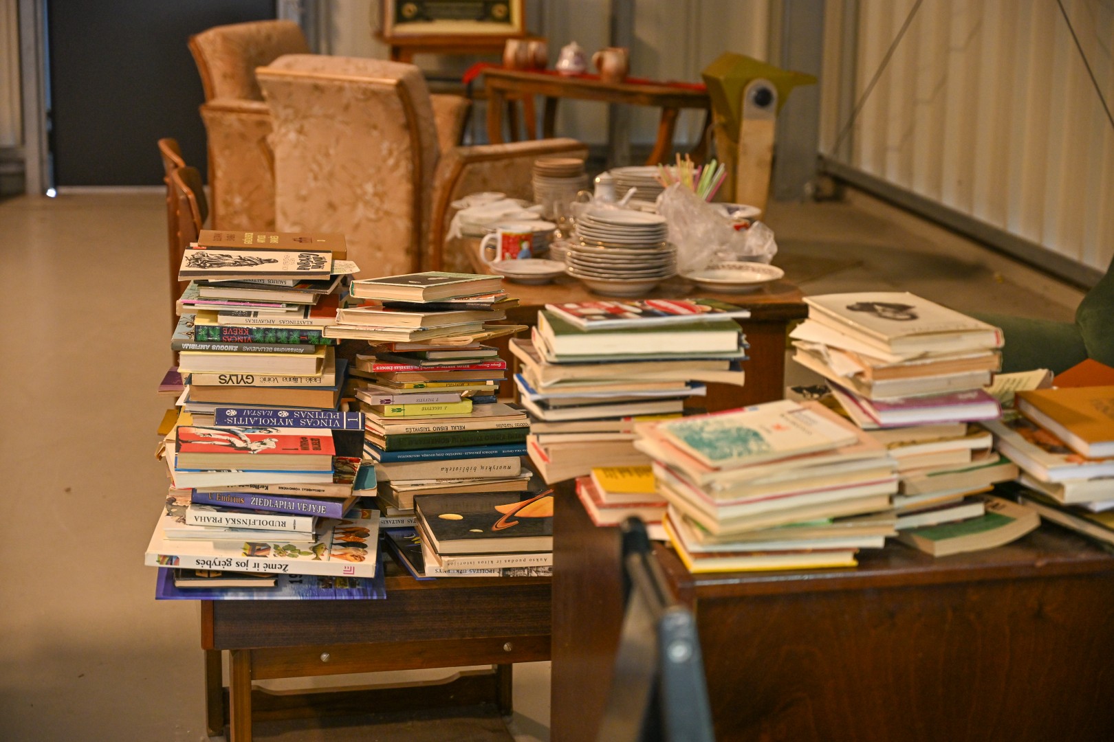 Lankytojai šluote iššlavė moksleiviams skirtus rašomuosius stalus, prie jų derančias biuro kėdes, stalines lempas.