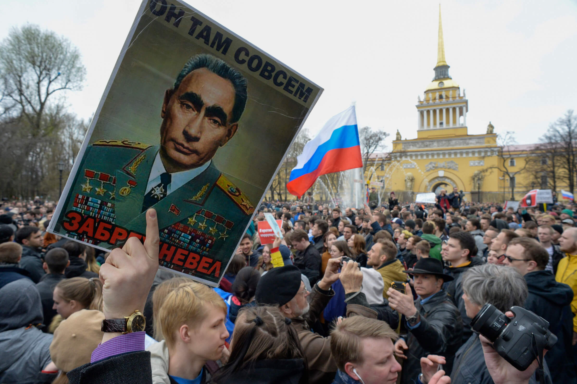 Pastarajame mieste keli tūkstančiai žmonių žygiavo pagrindiniu Nevskio prospektu, skanduodami „Putinas yra vagis“.