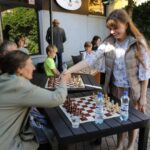 Su čempione sužaisti šachmatais Panevėžio teatro „Menas“ jaukiame kiemelyje galėjo visi norintieji.