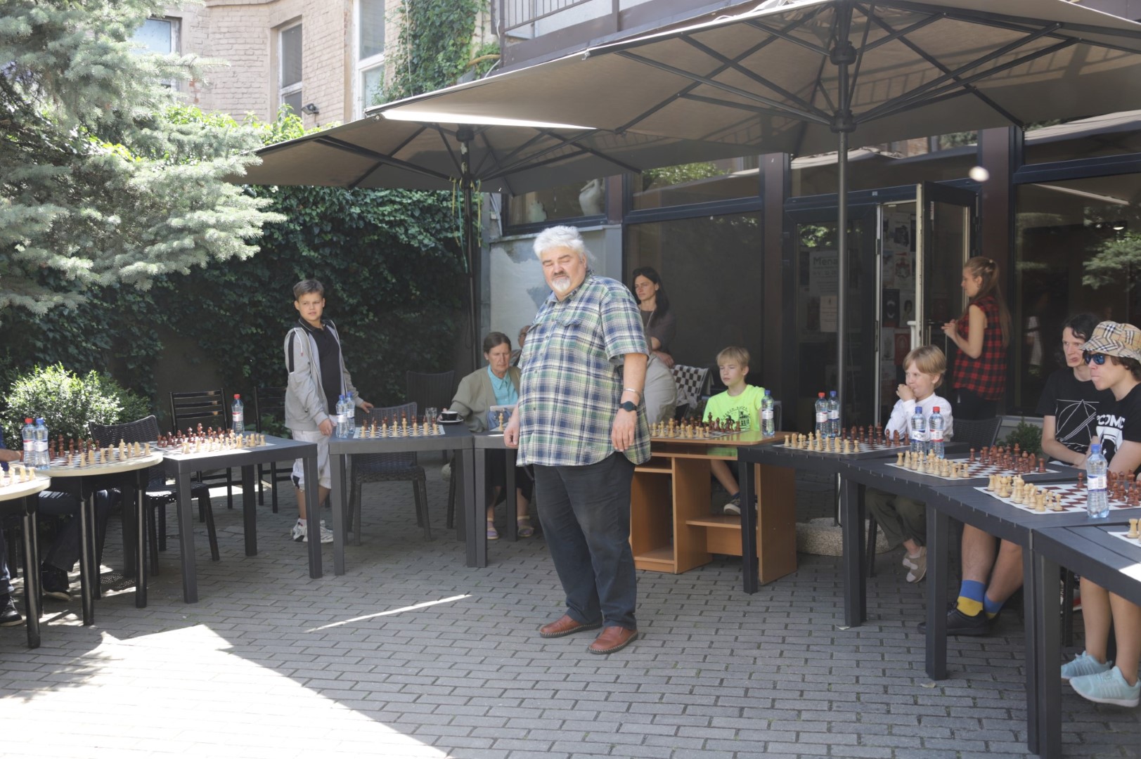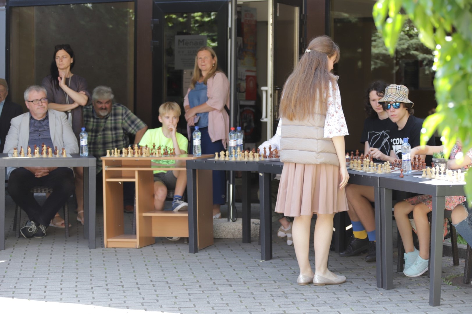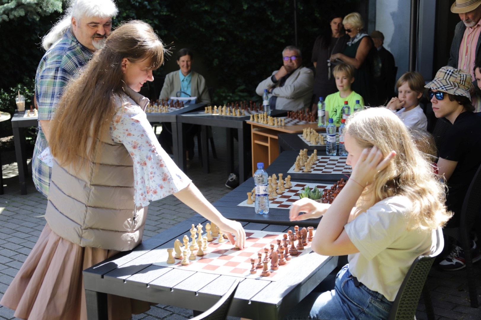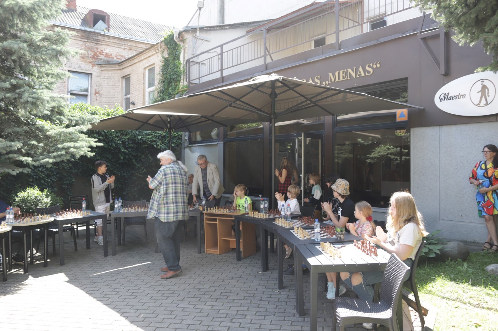 Su čempione sužaisti šachmatais Panevėžio teatro „Menas“ jaukiame kiemelyje galėjo visi norintieji.