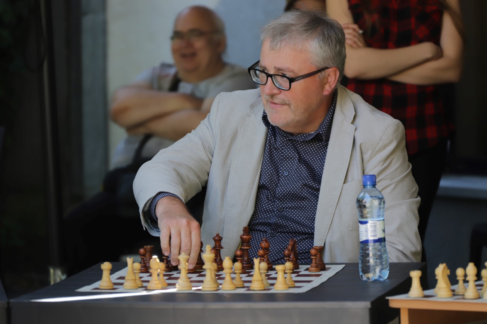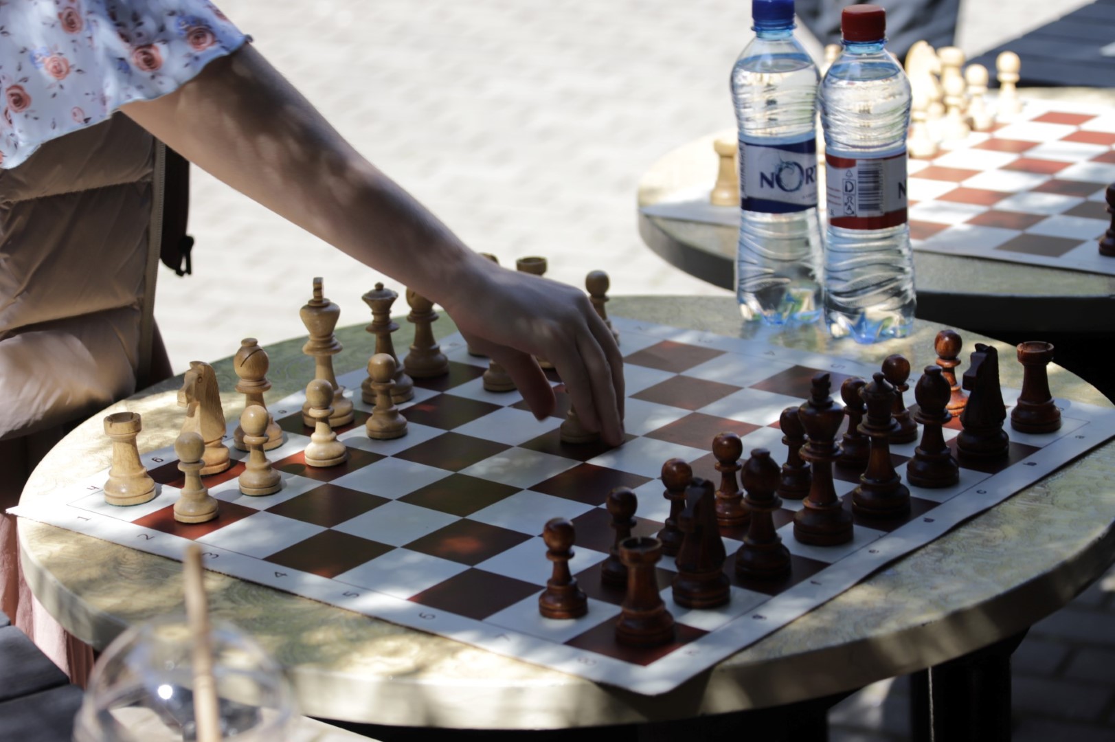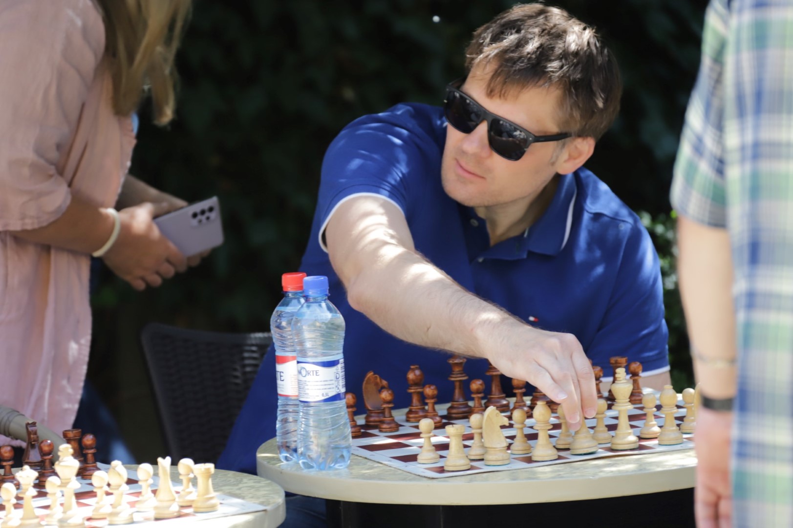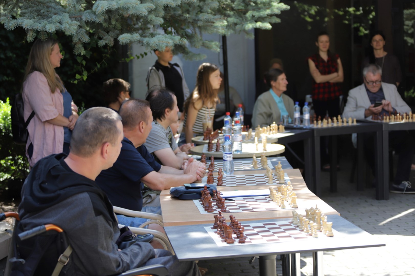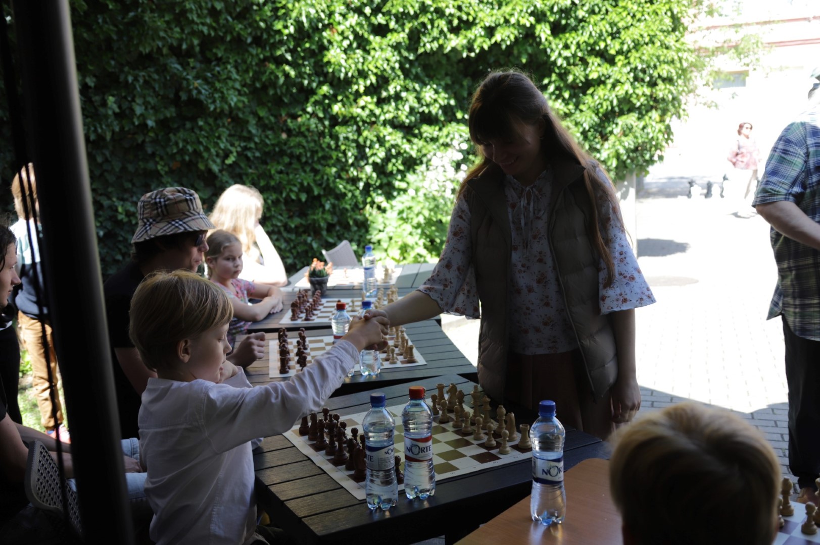 Su čempione sužaisti šachmatais Panevėžio teatro „Menas“ jaukiame kiemelyje galėjo visi norintieji.