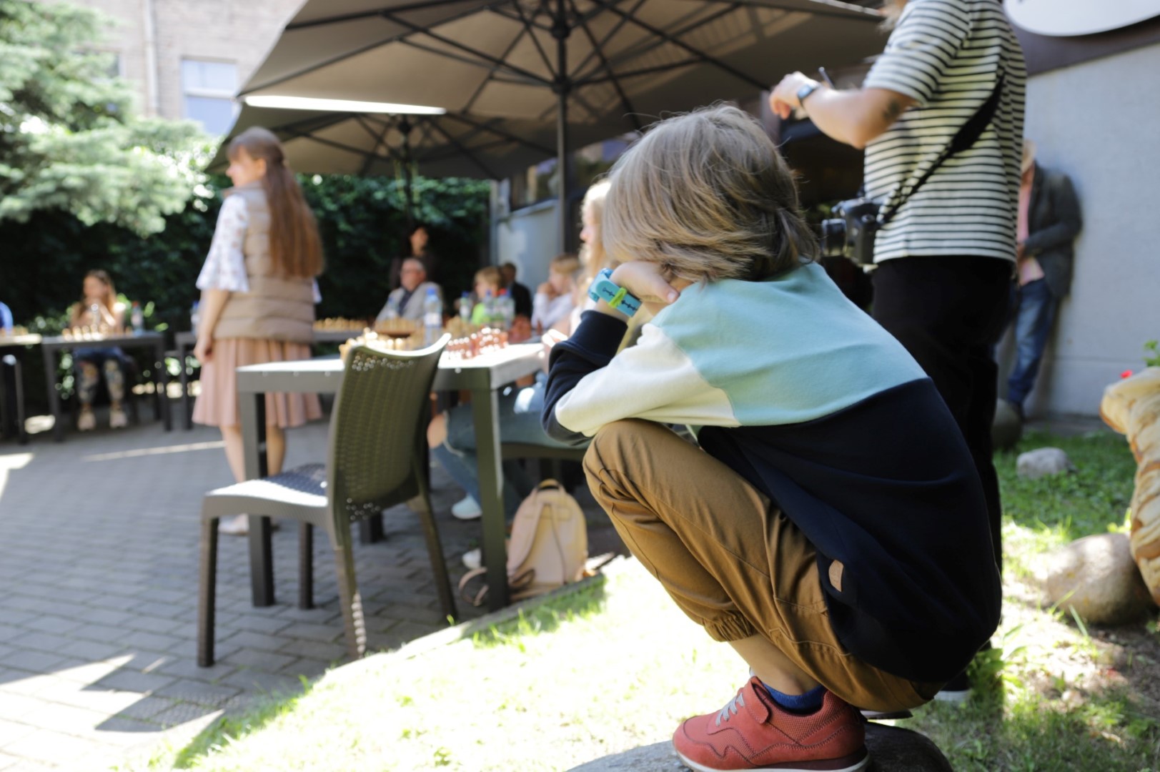 „Sūnus nuo mažumės labai mėgo žaisti šachmatais, net darželyje mokė kitus vaikus. Jam septyneri. Pagal savo amžiaus grupę jis jauniausias žaidėjas, o tarptautiniame turnyre Panevėžyje užėmė antrą vietą. Pradėjo žaisti šachmatais telefone, o šiandien varžysis ir su Olena“, – pasakojo A. Liobikienės mokinio mama, žiūrėdama, kaip žaidžia sūnus.