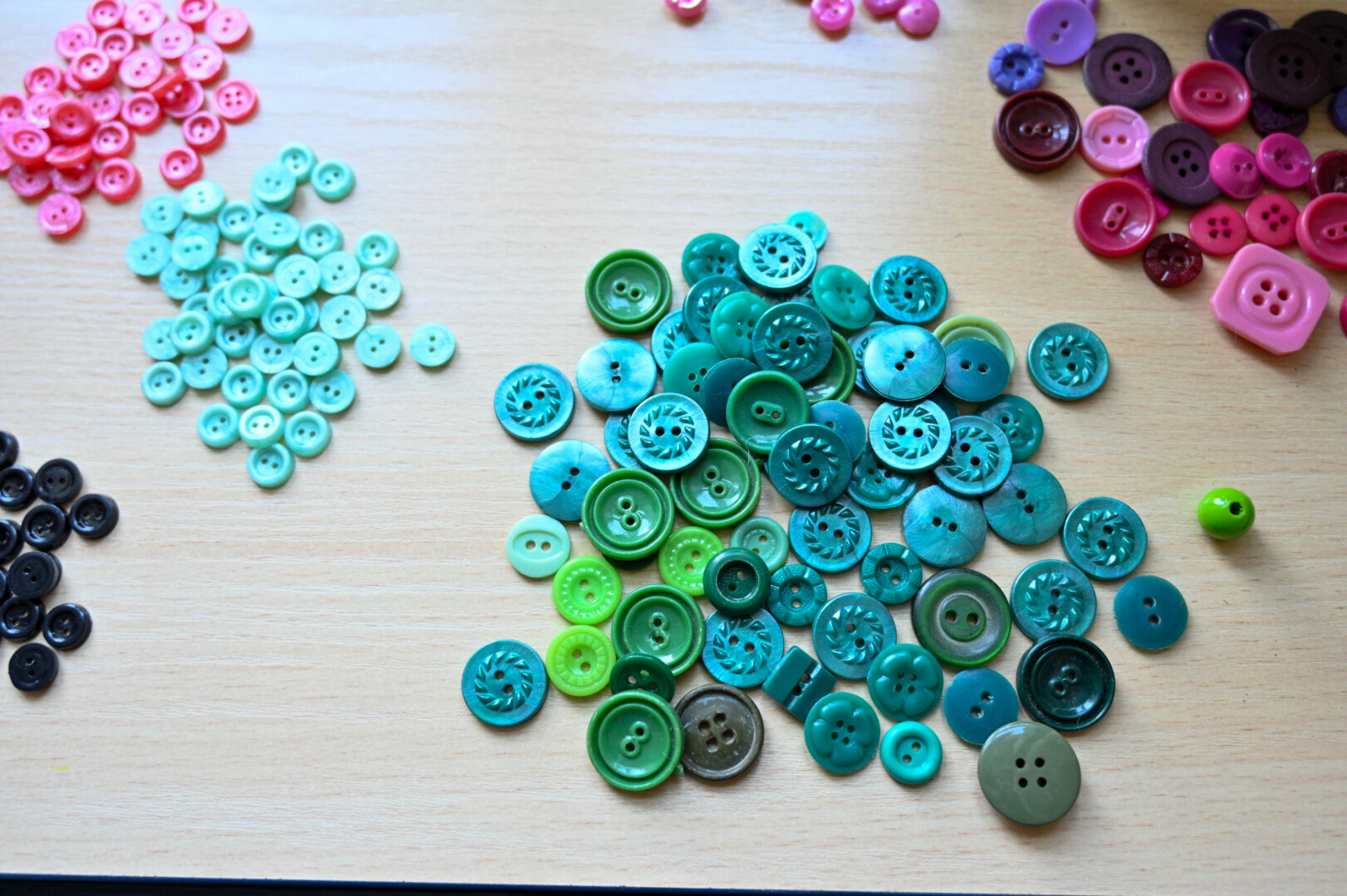 „Paroda padarė įspūdį. Vaikai žaisdavo su sagomis, stumdydavo, formuodavo piešinius, dienos pabaigoje juos sunku būdavo išprašyti. Pamaniau, kad ir mums reikėtų kažką padaryti“, – pasakoja L. Pranienė.