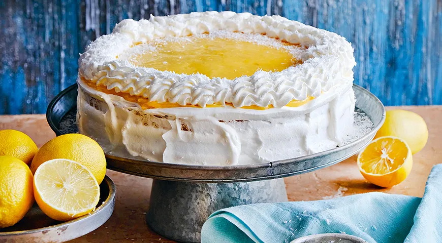 Reikės (10 porcijų): 3 biskvitų, kokosų drožlių; kokosiniam kremui: 400 g kreminio sūrio, 220 g miltelinio cukraus, 60 ml kokosų pieno, 50 g kokosų pieno miltelių, 1 šaukštelio vanilinio cukraus; citrininiam kremui: 2 citrinų, 2 kiaušinių trynių, 100 g cukraus, 50 g sviesto, 1 šaukštelio kukurūzų krakmolo; biskvitams suvilgyti: 2 šaukštų itališko citrinų skonio likerio, 2 šaukštų citrinų sulčių, 50 g miltelinio cukraus.