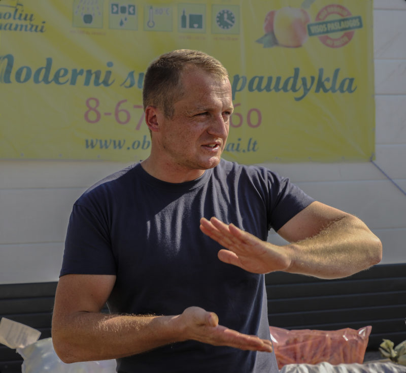 „Visada būdavo, kad Vilniuje obuolių daugiau nei Panevėžio krašte, bet šiemet yra atvirkščiai, nors ir panevėžiečiai geru derliumi pasigirti negali. Labai daug obuolių tiesiog supuvo ant medžių. Orientuojamės į kokybę, todėl jeigu tik pamatau puvinį, net nepriimu tokių obuolių. Juk papuvusio obuolio nevalgome, tai kodėl iš tokio turėtume spausti sultis“, – sakė V. Pranskūnas.