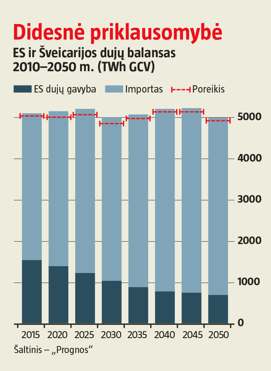 „Nord Stream 2“ atstovai pabrėžia, kad per ateinančius 20 metų ES vidaus dujų gamyba sumenks apie 50 proc. Norvegija ir Jungtinė Karalystė dujų gavybą gali sumažinti po 25 mlrd. kub. m, Nyderlandai – 40 mlrd. kub. m. Daugiau nei pusę šildymui reikalingos energijos Vokietijoje pagaminama deginant dujas, kurios perkamos iš Rusijos, Norvegijos ir Nyderlandų. Dėl šios priežasties Vokietijai būtina užsitikrinti papildomą dujų tiekimą.