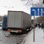 Pirminiais duomenimis, trys lengvosios mašinos, krovininis automobilis bei autobusas stovėjo prie šviesoforo ir laukė toliau važiuoti leidžiančio žalios spalvos signalo. Čia į juos iš galo rėžėsi atlėkęs vilkikas.
