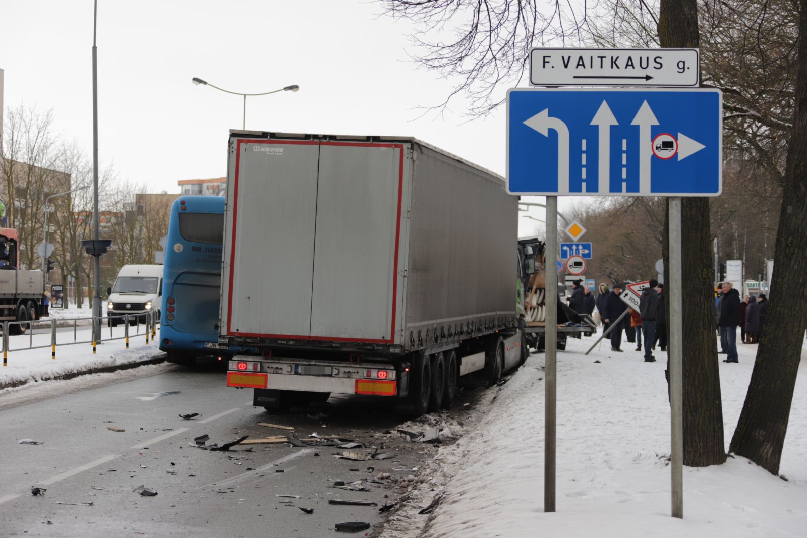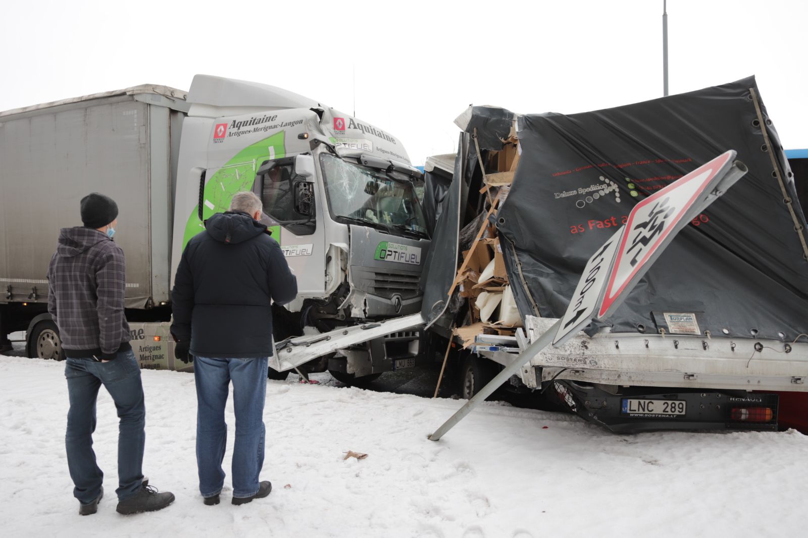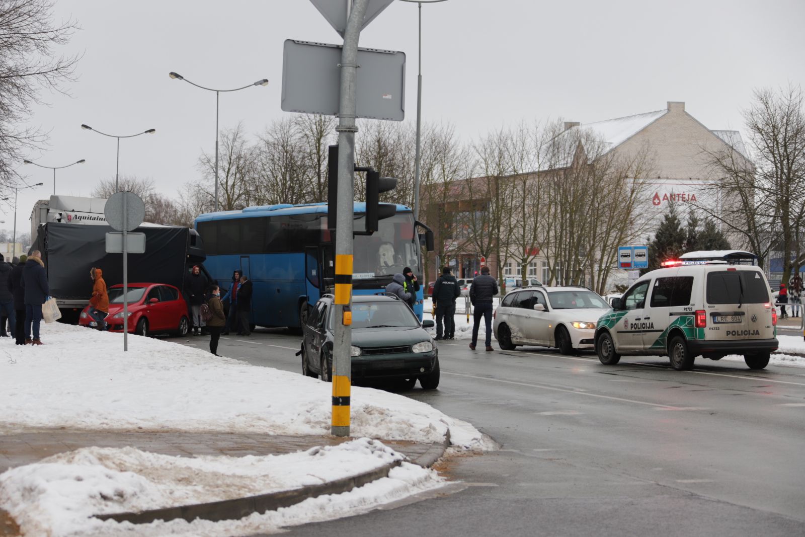 Pirminiais duomenimis, trys lengvosios mašinos, krovininis automobilis bei autobusas stovėjo prie šviesoforo ir laukė toliau važiuoti leidžiančio žalios spalvos signalo. Čia į juos iš galo rėžėsi atlėkęs vilkikas.