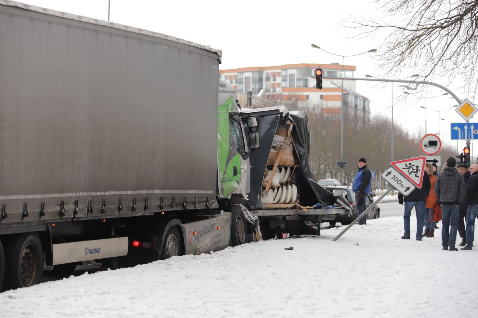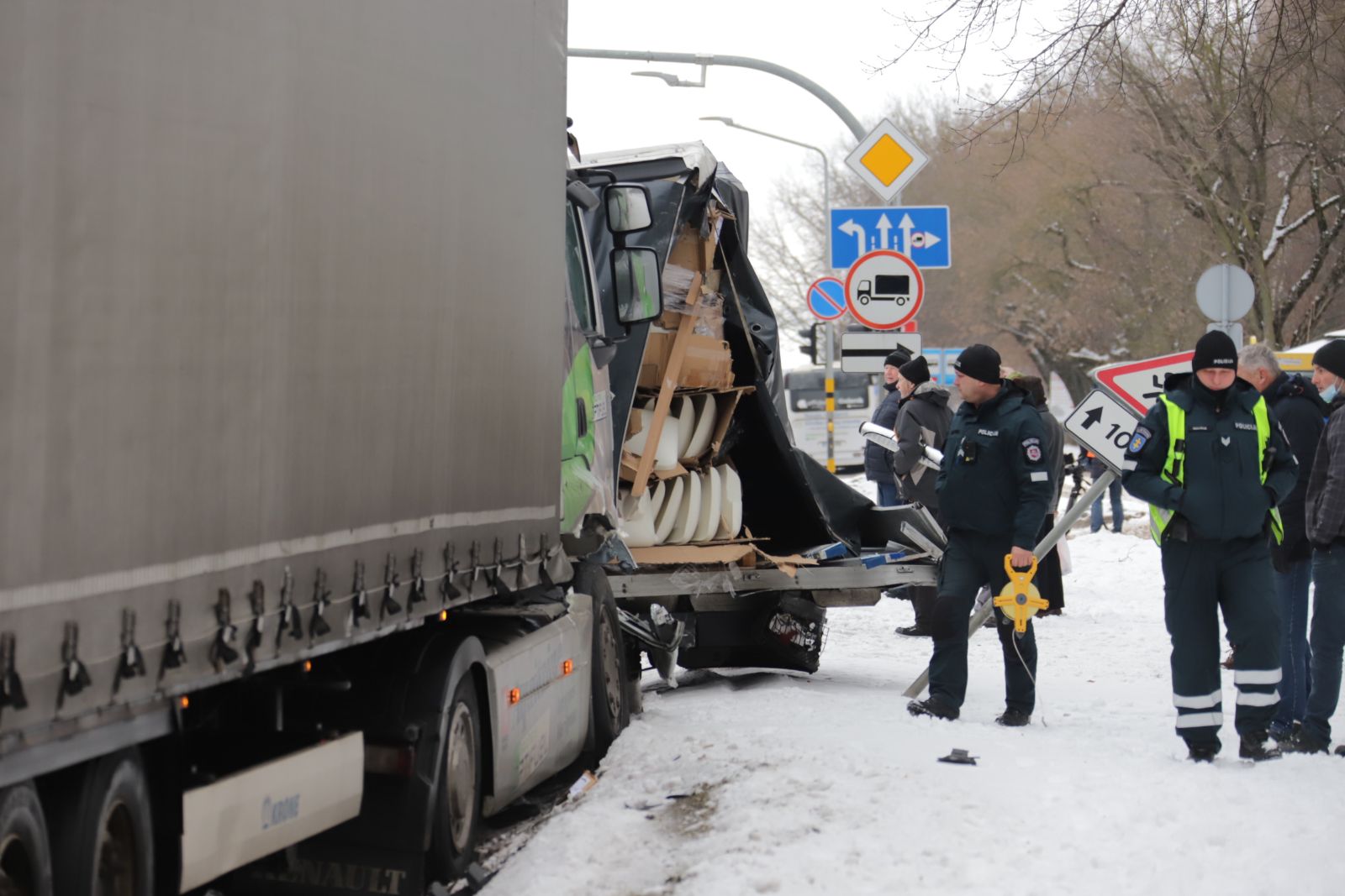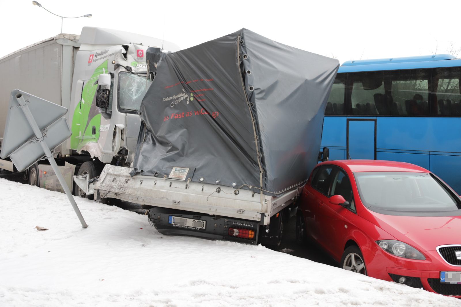 Pirminiais duomenimis, trys lengvosios mašinos, krovininis automobilis bei autobusas stovėjo prie šviesoforo ir laukė toliau važiuoti leidžiančio žalios spalvos signalo. Čia į juos iš galo rėžėsi atlėkęs vilkikas.