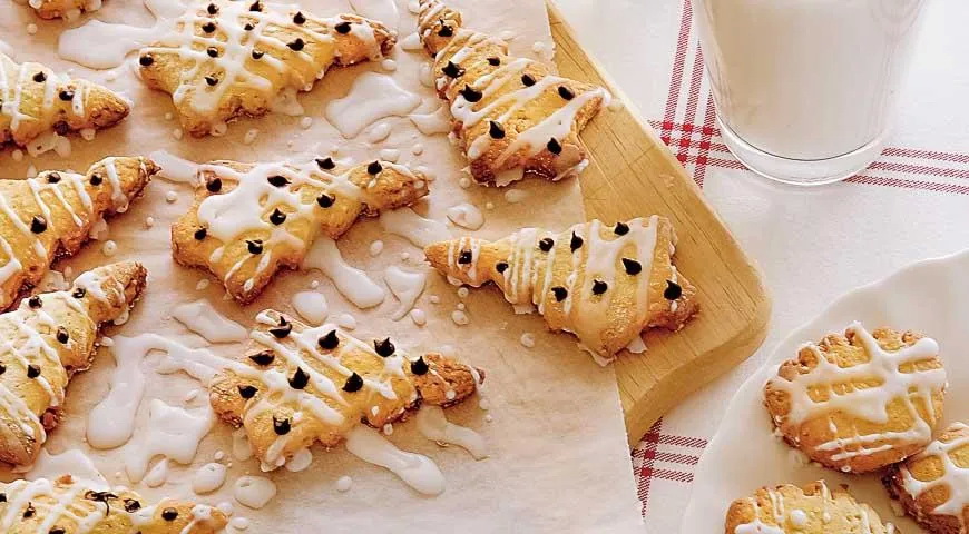 Formelėmis spauskite eglutes ir dėkite į riebalais suteptu pergamentiniu popieriumi išklotą skardą.