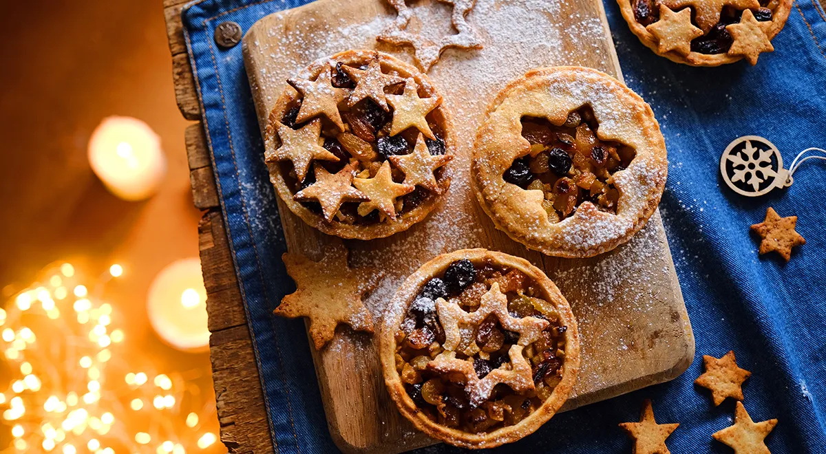 Reikės (8 porcijoms): 450 g miltų, 300 g sviesto, 2 kiaušinių trynių, 50 g cukraus, 0,5 šaukštelio jūros druskos; įdarui: 250 g obuolių, 225 g smulkių geltonųjų razinų, 110 g smulkių tamsiųjų razinų, 110 g stambių geltonųjų razinų, 30 g džiovintų vyšnių, 50 g apelsinų cukatų, 15 g sviesto, 1 citrinos sulčių, tarkuotos 1 citrinos žievelės, 115 g cukraus, 50 ml viskio arba romo, 0,25 šaukštelio muskato, 1 šaukštelio cinamono, gvazdikėlių, kardamono ir imbiero mišinio.
