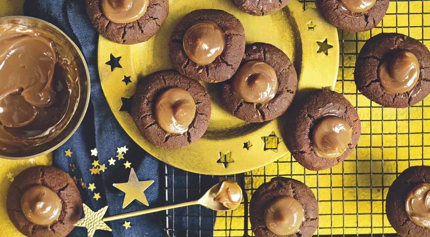 Šokoladiniai sausainiai su klampia karamele