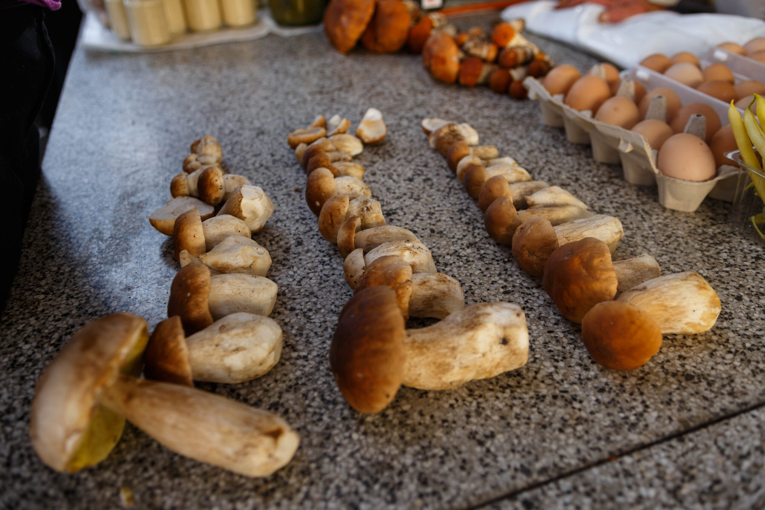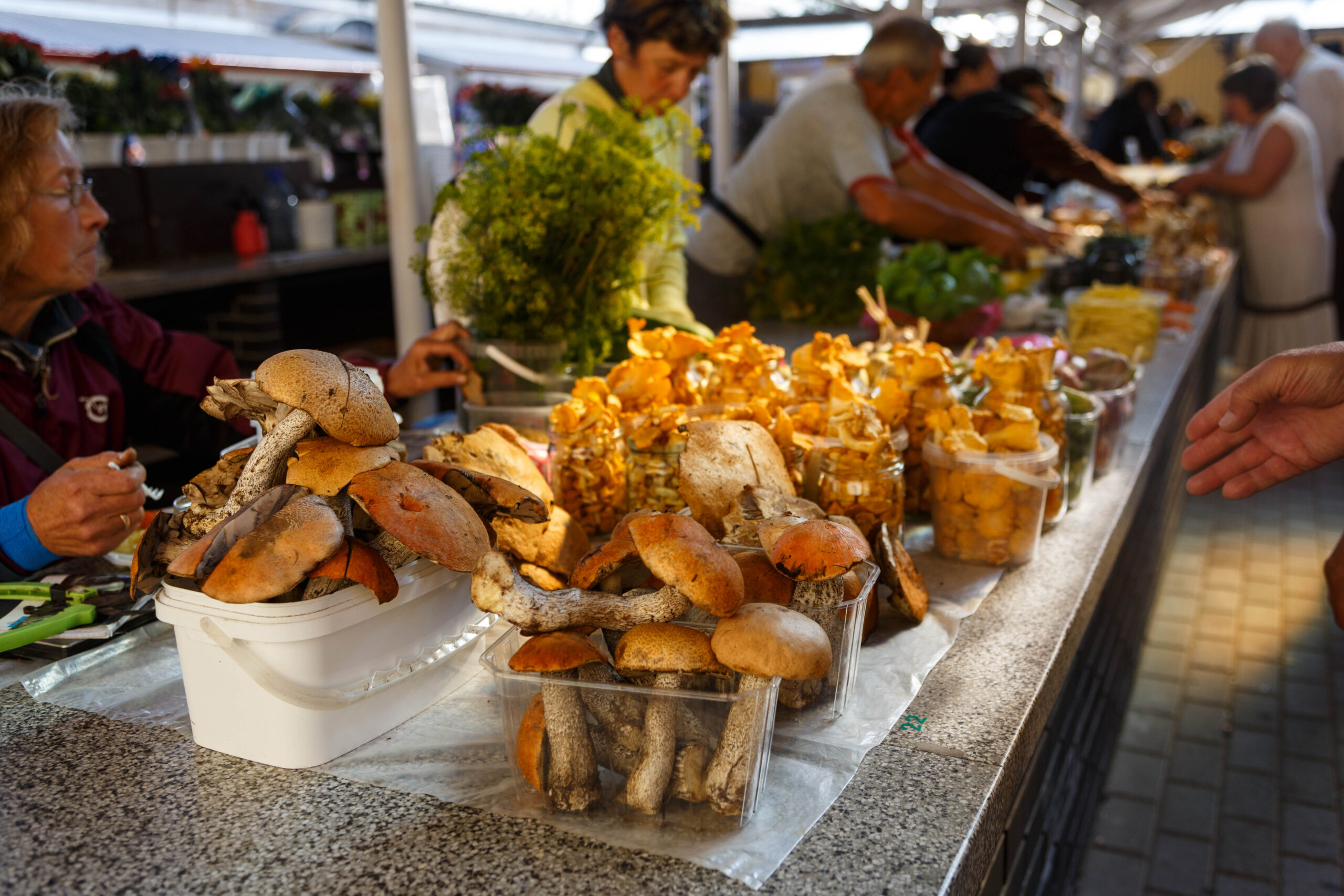 O centrinėje miesto turgavietėje ant stalų grybų itin gausu. Čia puikavosi baravykai, raudonviršiai, lepšės, ūmėdės, voveraitės.