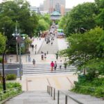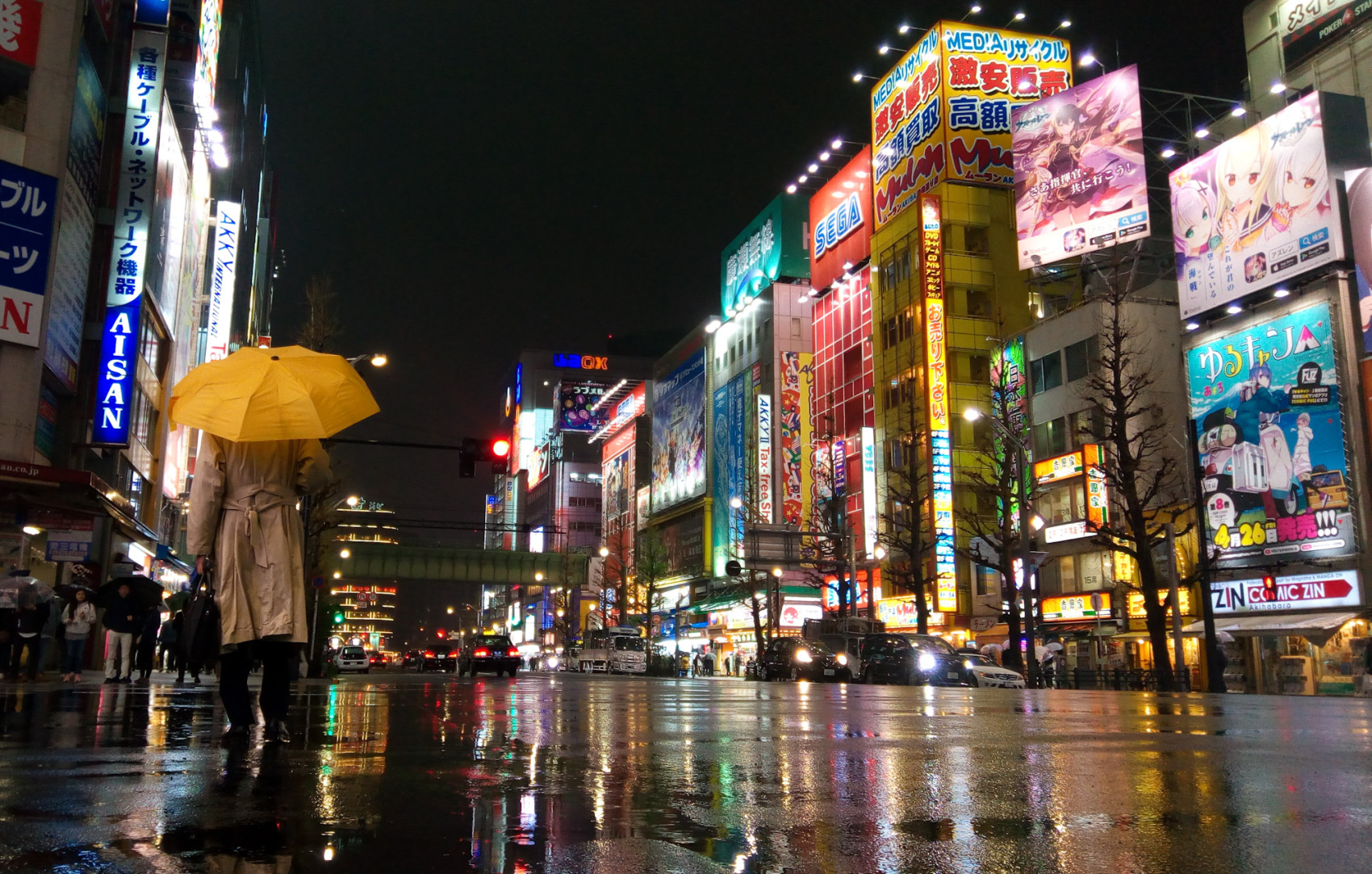 Tokijo Šindžiuku mikrorajone, kur įsikūrusi panevėžietė, gausu kavinių, parduotuvių, mažų gatvelių, užtvindytų žmonių gausybės ir visą naktį akinamai šviečiančiomis reklamomis, verda naktinis gyvenimas. Vakaras Tokijuje prasideda anksti, jau 17 val. nusileidus saulei. Gatvėse tiršta žmonių, itin plačios – trijų automobilių pločio – perėjos, kuriomis kino filme vaikščiojo pati Godzila. Kas antrame žingsnyje pasitinka japonų užkandinės, viliojančios vietinio maisto kvapais.