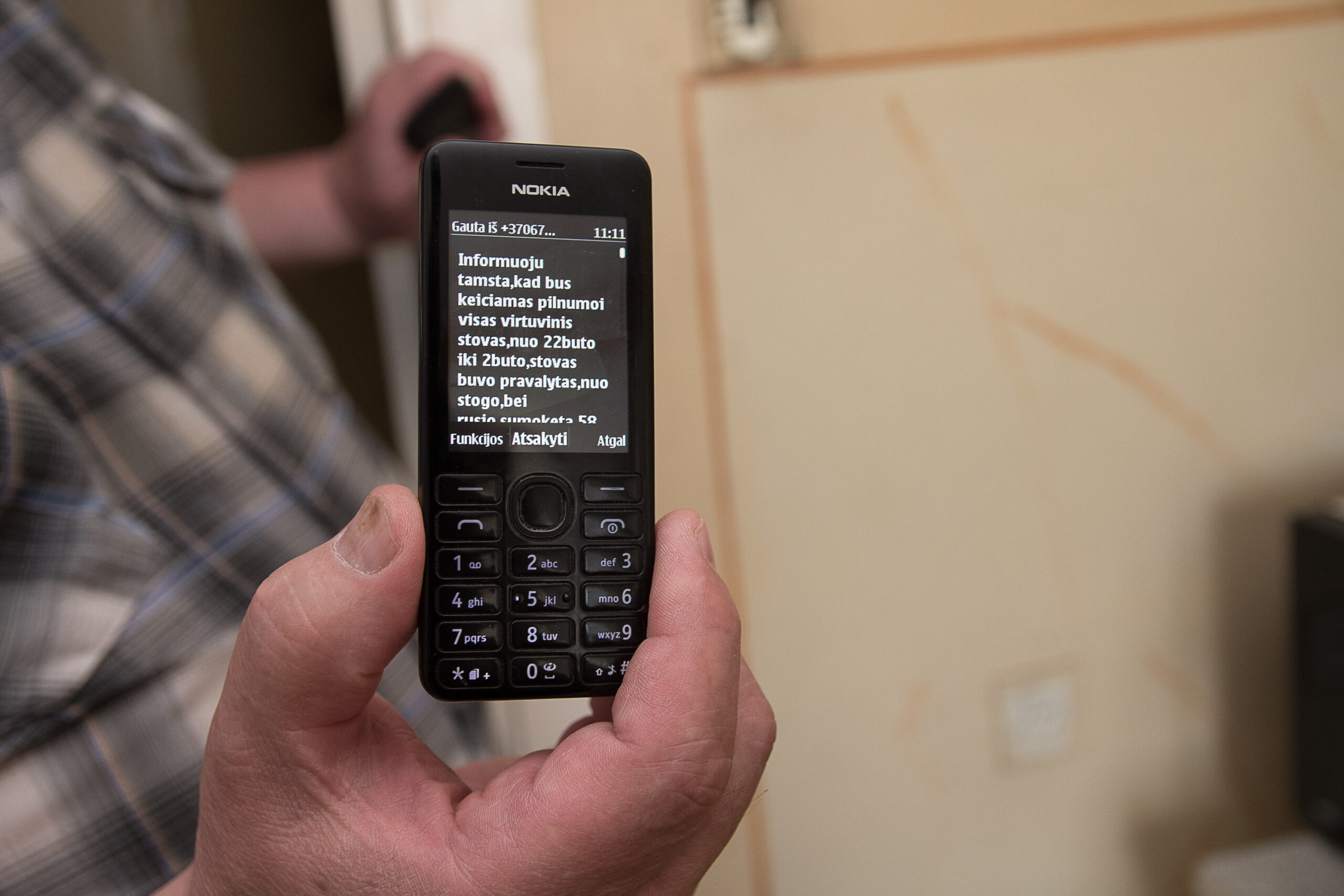 „Problema prasidėjo jau prieš dvejus metus, bet tada tik rasodavo vieta, kur eina vamzdžiai. Tąkart viršutinio aukšto gyventojai pareiškė, kad neleis griauti sienos, kad būtų galima prieiti prie vamzdžių, nes jie pasidarė remontą. Pagal projektą nebuvo galima aklinai uždengti vamzdžių, jie privalėjo įstatyti dureles. Taip savivaliauti negalima, bet tąkart viskas taip ir buvo palikta. O prieš tris savaites vanduo jau pradėjo veržtis pro sienas. Žmona pasakojo, kad pajuto svilėsių kvapą ir įvyko sprogimas – trumpasis jungimas“, – pasakojo J. Valuckis.