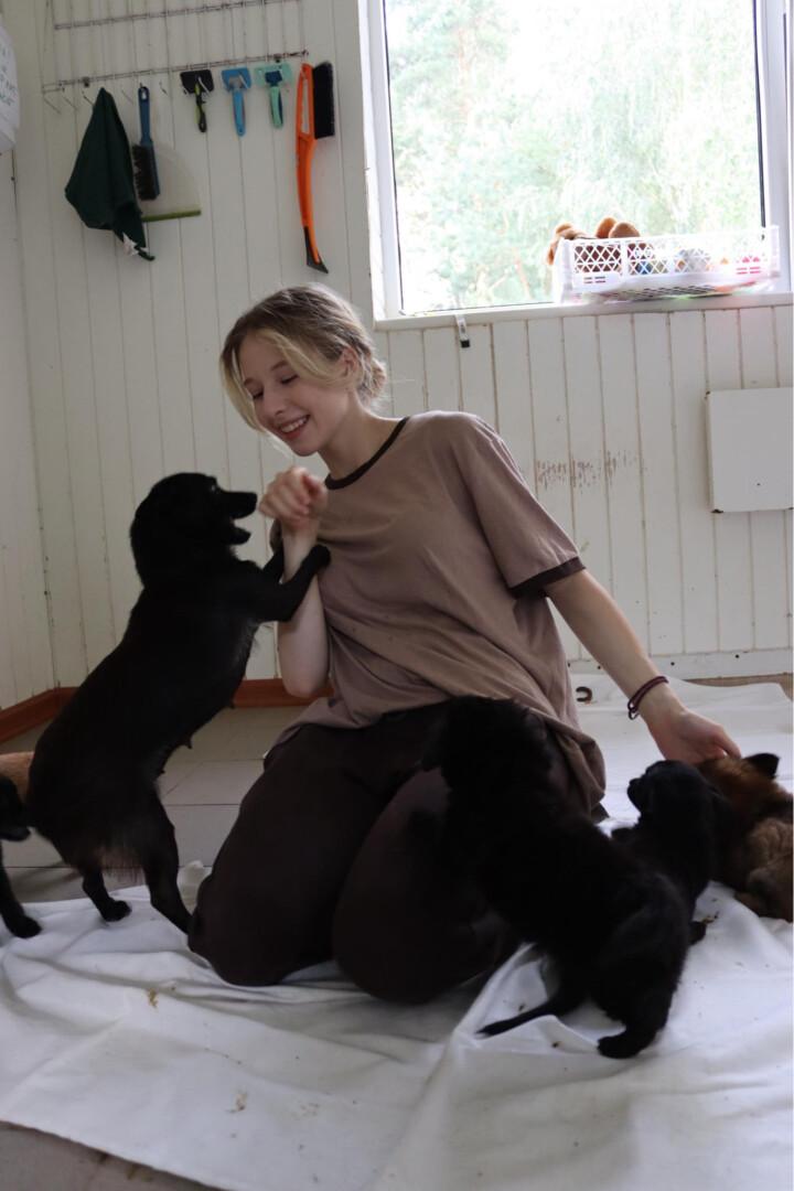 Pirmosiomis dienomis prieglaudoje K. Lentočkina darbavosi kartu su vadove: ji valė voljerus, o Katrina ruošė šuniukams ėdesį.
