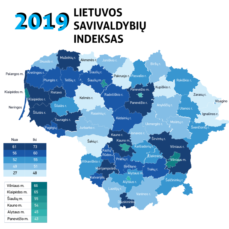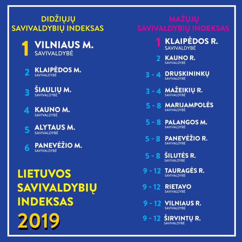 - Geriausiai besitvarkančios savivaldybės titulą Lietuvos savivaldybių indekse šiemet susigrąžino sostinė, nedideliu skirtumu aplenkusi Klaipėdos miestą. Toliau rikiuojasi Šiauliai, Kaunas. Didžiųjų šalies savivaldybių sąrašą užbaigia Panevėžys, į priekį praleidęs Dzūkijos sostinę Alytų.