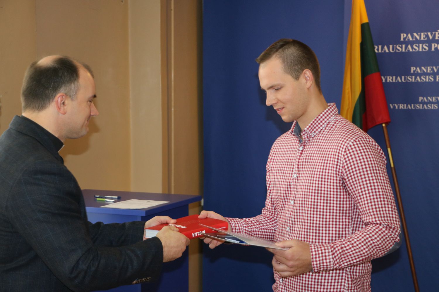 Policijos kapelionas Eugenijus Troickis laimino naują pareigūną, įteikė Bibliją linkėdamas, visada surasti teisingą sprendimą, tinkamą žodį, kad Dievo palaima lydėtų tarnyboje ir asmeniniame gyvenime.