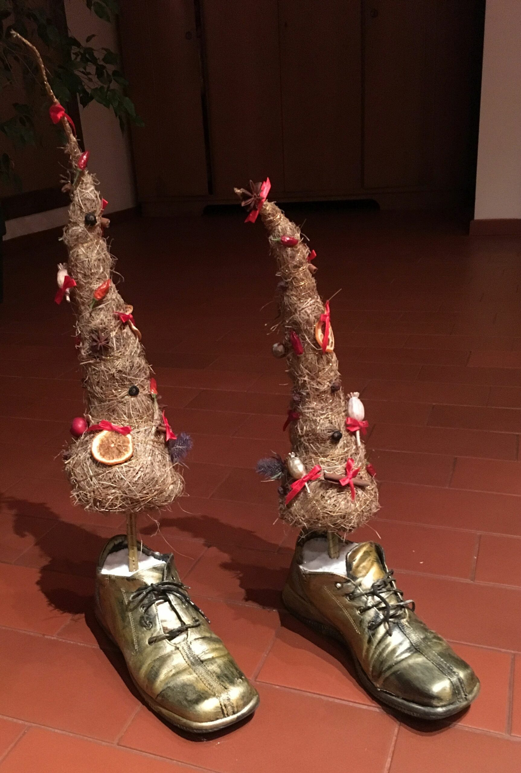 R. Taučikienė su dukromis Kūčių dieną puošia ne tik Kalėdų medį. Prasidėjus adventui, prie namų lauke išdygsta ir stilizuotos eglutės iš šieno. Ir jos išsilaiko ne vienerius metus, kasmet belieka jas šiek tiek pakoreguoti, kad vėl džiugintų akį. Originalios ir vienetinės puošmenos nelieka nepastebėtos ir aplinkinių.